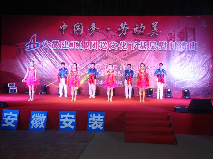 8月26日晚,集團公司送文化下基層深入公司白湖監(jiān)獄罪犯醫(yī)療綜合樓項目部慰問演出,白湖監(jiān)獄綜合樓項目部全體管理人員和農(nóng)民工兄弟200多人現(xiàn)場觀看了演出。該工程位于廬江縣白湖鎮(zhèn),這里工作著一批腳踏實地、埋頭苦干、敢于擔當、奉獻企業(yè)的職工,來自集團公司各子公司的“演員”,帶著自編、自導、自演的精品文藝作品,將用一場精妙的文化活動,在這里掀起文化與建設互動的歡樂波瀾。集團公司工會主席徐曉光,白湖分局黨委副書記、總經(jīng)理沈建華以及公司有關領導和參演單位工會主席出席了演出活動。