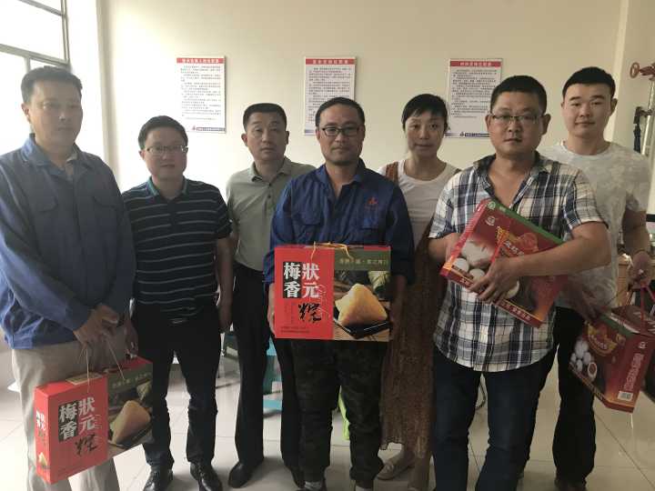 一個粽子,一份情,一片心。端午節來臨之際,蚌埠分公司領導班子一行深入蚌埠卷煙廠項目部、合肥五糧泰項目部慰問節日期間堅守崗位的一線員工,同時送去了粽子、咸鴨蛋等節日慰問品。