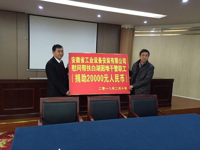 會(huì)上,李寬旭代表安徽安裝公司向白湖困難干警職工捐助慰問幫扶金20000元。