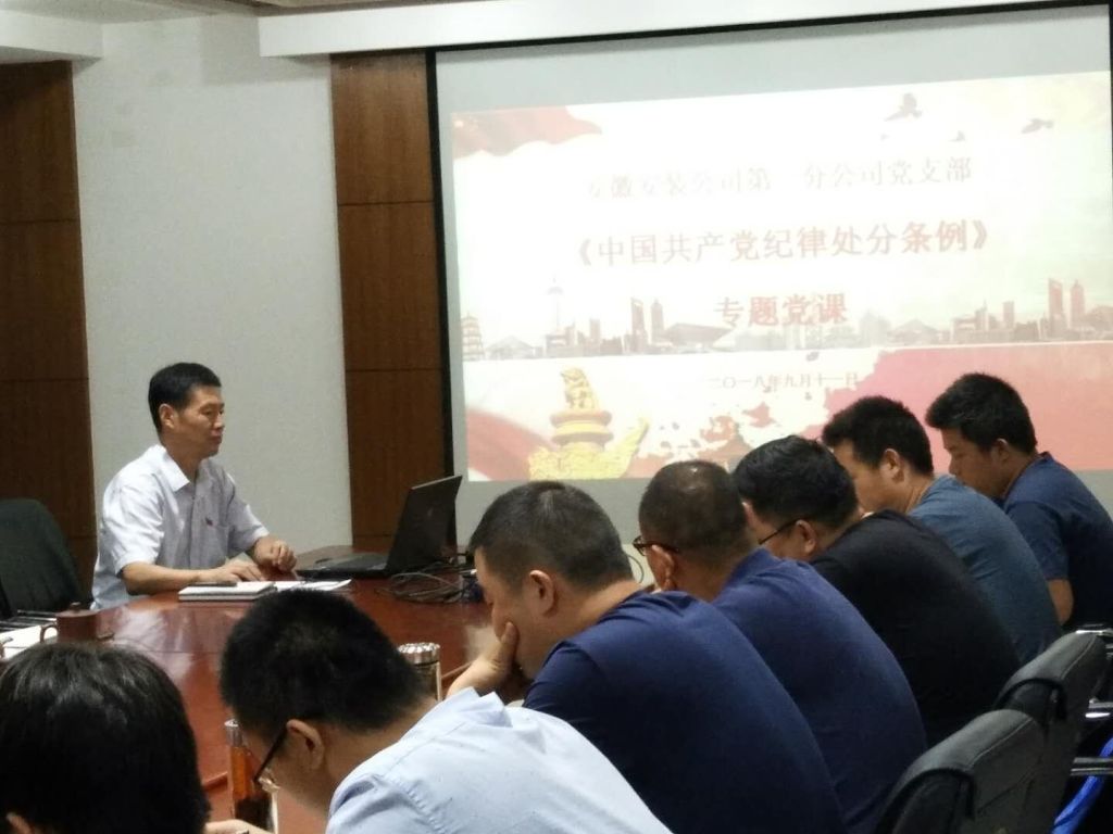 9月11日,第一分公司黨支部開(kāi)展“黨支部書記上黨課”主題黨日活動(dòng)。分公司黨支部書記胡迎東以新修訂的《中國(guó)共產(chǎn)黨紀(jì)律處分條例》為主題,采用PPT的形式為全體黨員、分公司領(lǐng)導(dǎo)班子成員、機(jī)關(guān)部門負(fù)責(zé)人、在肥項(xiàng)目經(jīng)理上了一堂生動(dòng)的黨課。