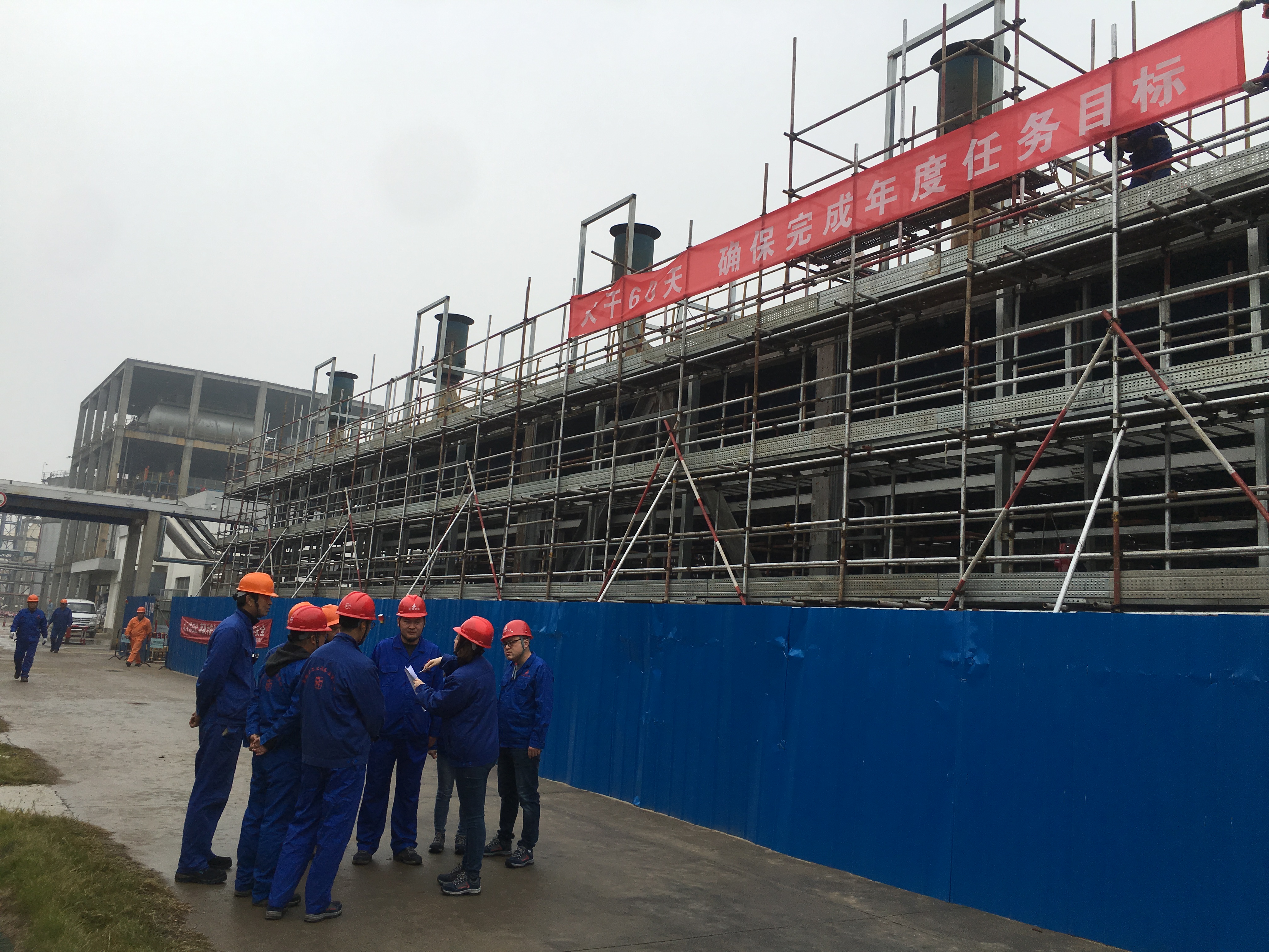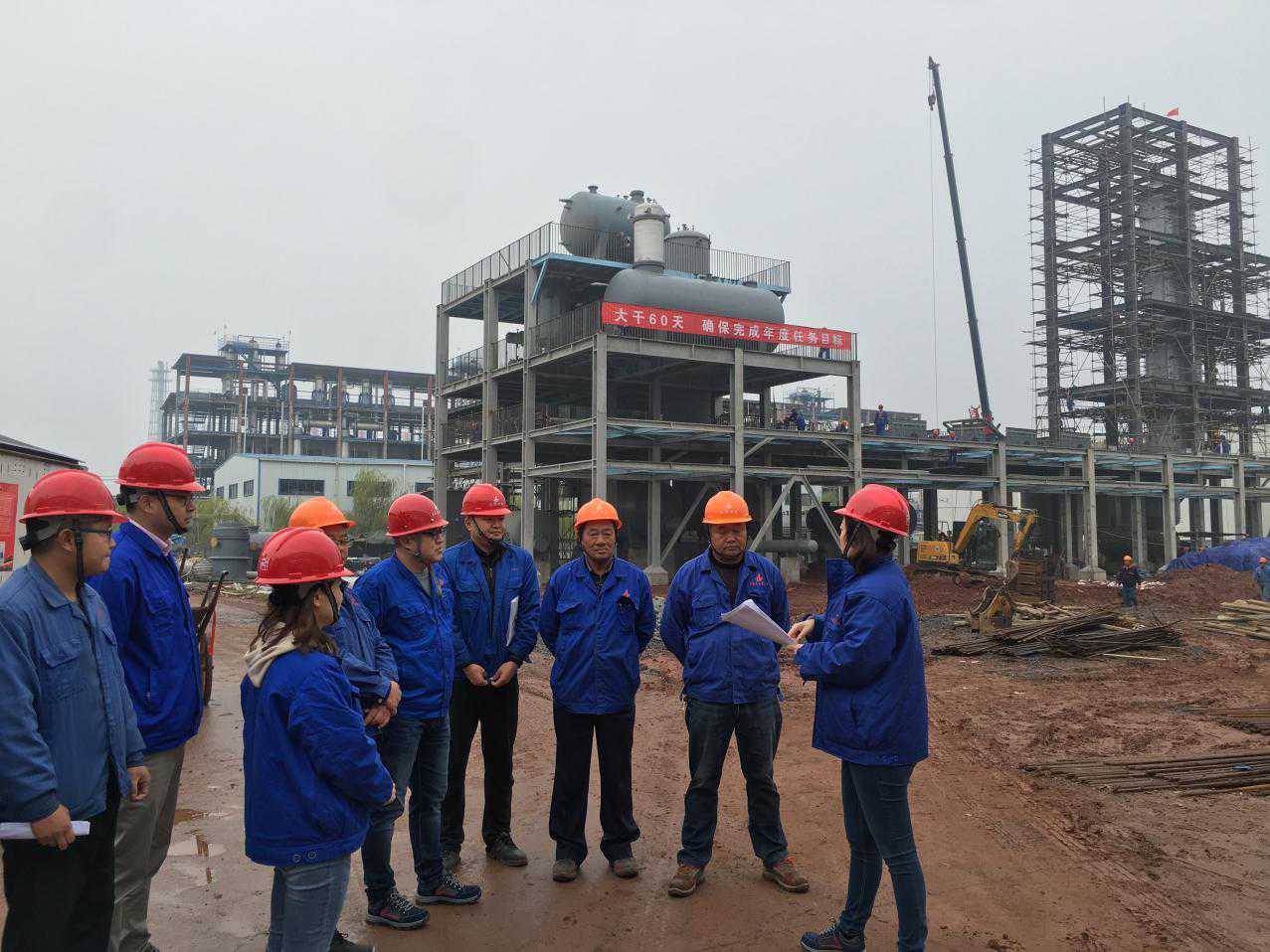 為響應公司“大干60天”勞動競賽活動,把此項活動落到實處,11月15日上午,安慶分公司黨支部書記、工會主席、副經理劉紅艷攜相關管理人員冒著綿綿細雨前往分公司承建的“安徽力天環??萍脊煞萦邢薰驹鏊軇┭b置循環產業鏈建設項目5萬噸/年苯酐裝置項目”和“中石化安慶分公司水污部污水處理場鼓風機降噪改造項目”兩個參賽的工程施工現場督導檢查競賽開展情況,以此推進勞動競賽的實施,促進項目的順利完工。