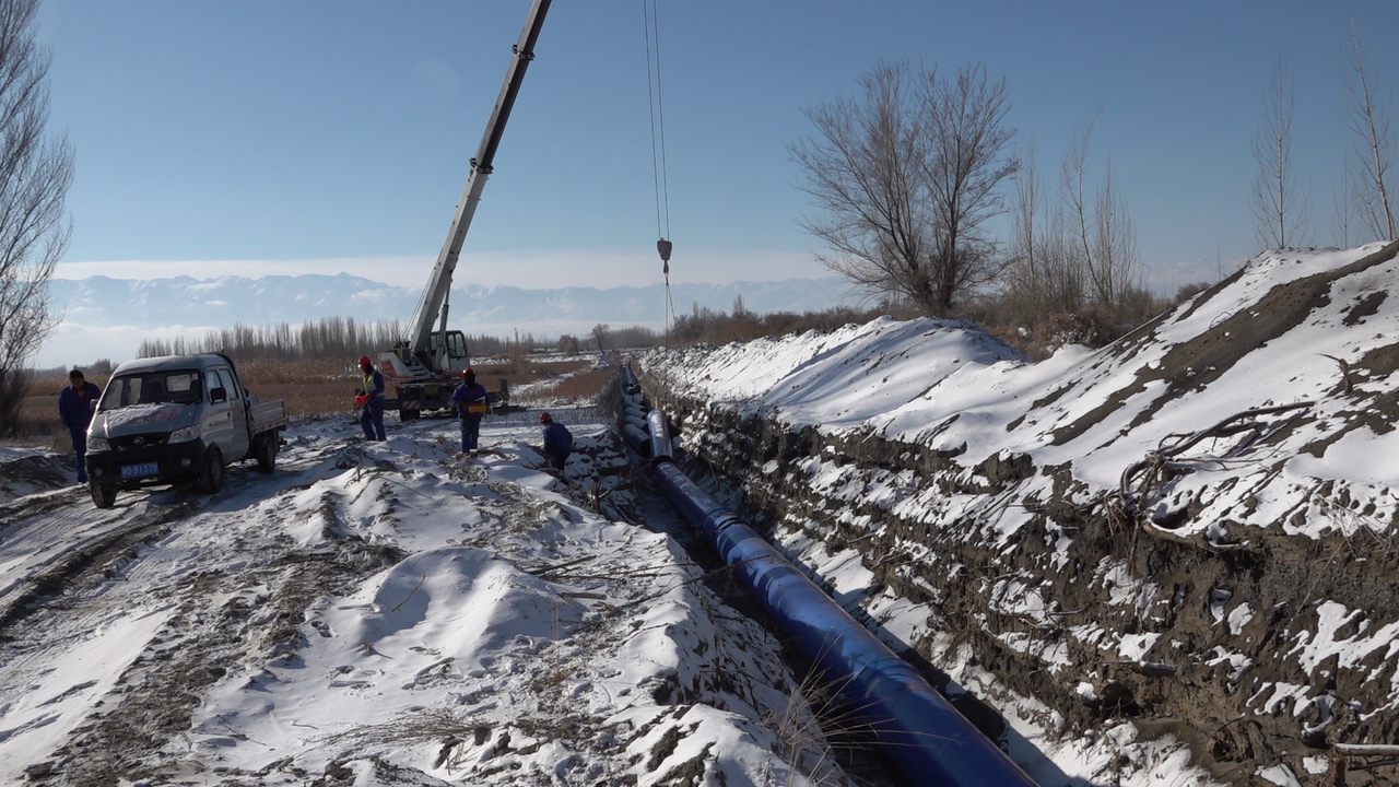 中水回用工程是在野外長距離作業(yè),管道沿途需要穿過高速、省道、鐵路、亞歐光纜及眾多鄉(xiāng)村道路和田間陰溝,施工區(qū)域內(nèi)有農(nóng)田、戈壁、沙漠,沼澤等,自然環(huán)境極其惡劣,施工地質(zhì)極為復(fù)雜。尤其在步入11月,新疆烏蘇市正式進(jìn)入寒冬季節(jié),期間平均氣溫都在零下十度以下,并時常飛舞著雪花,由于晝夜溫差大,夜間項(xiàng)目上的氣溫更是達(dá)到零下二三十度,這給項(xiàng)目部施工帶來了嚴(yán)重挑戰(zhàn),但項(xiàng)目部員工沒有被惡劣的環(huán)境所嚇倒,他們“逢山開路、遇水搭橋”,努力克服各方面不利因素,合理安排施工進(jìn)度計(jì)劃。全體職工發(fā)揚(yáng)安徽建工人“特別能吃苦,特別能戰(zhàn)斗”的企業(yè)作風(fēng),在公司“大干60天”勞動競賽的正向激勵下,不畏環(huán)境艱苦,抓質(zhì)量,保安全,戰(zhàn)荒漠,斗嚴(yán)寒,每天堅(jiān)持戰(zhàn)斗在生產(chǎn)第一線,哪里有施工,哪里就有管理人員的堅(jiān)定身影。