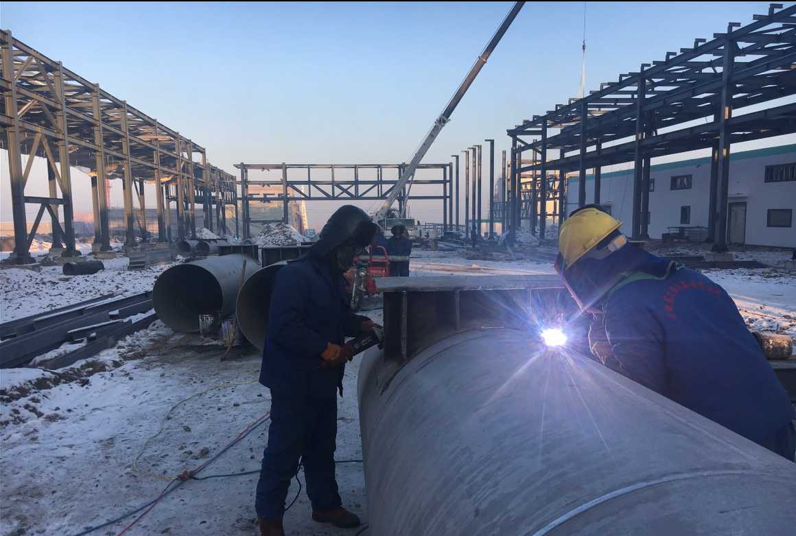 冬日施工中的新疆烏蘇管廊項(xiàng)目現(xiàn)場
