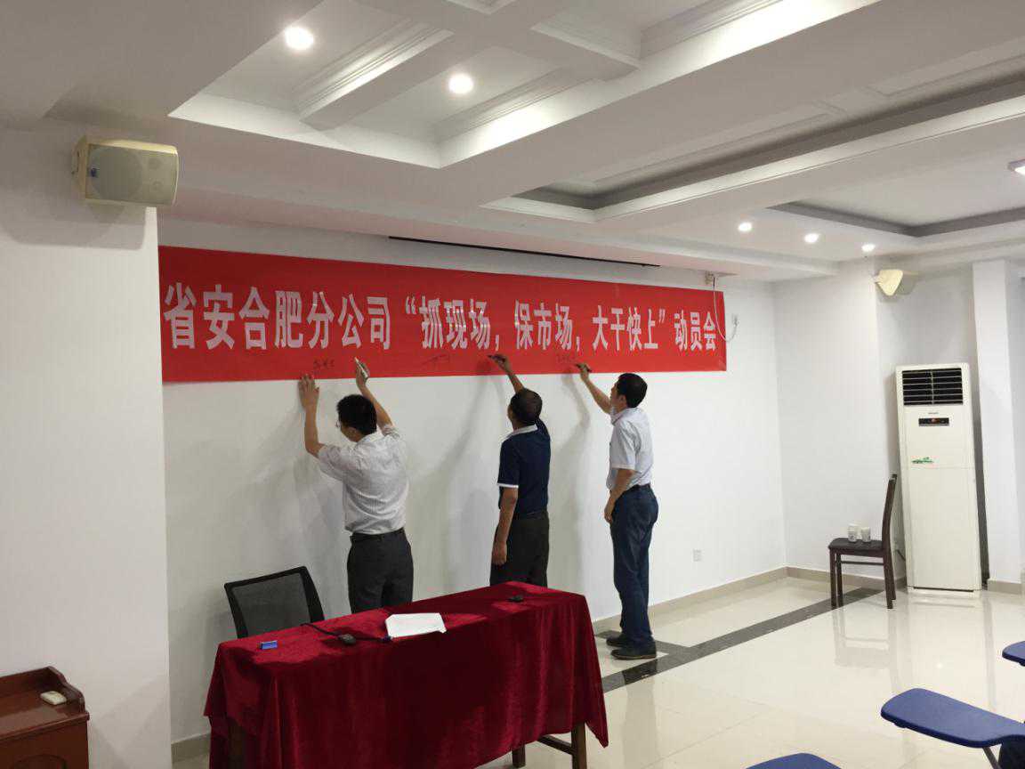 最后全體參會人員在宣傳橫幅上進行了簽字,正式啟動合肥分公司“抓現場、保市場、大干快上”生產主題活動。