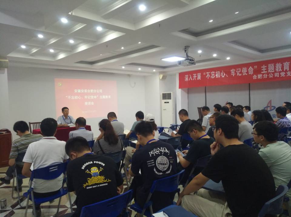 為深入開展“不忘初心,牢記使命”主題教育活動,將主題教育落到實(shí)處、產(chǎn)生實(shí)效,切實(shí)加強(qiáng)分公司黨員干部的責(zé)任感、使命感、擔(dān)當(dāng)感,合肥分公司黨支部于7月17日下午在公司十五樓職工之家召開了“不忘初心,牢記使命”主題教育座談會,分公司領(lǐng)導(dǎo)班子成員、機(jī)關(guān)全體人員、在肥項(xiàng)目部人員共計(jì)40余人參與會議。會議由分公司黨支部書記胡迎東主持。