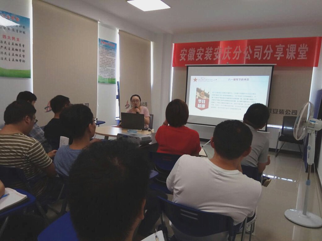 8月1日下午,安慶分公司黨支部充分利用分享課堂,組織全體員工開展“不忘初心,牢記使命”主題教育之慶祝中國人民解放軍建軍92周年活動。