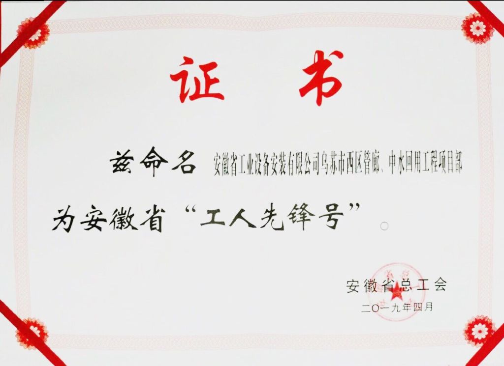 勞動托起中國夢,奮斗建功新時代。4月29日上午,“安徽省慶祝‘五一’暨勞動和技能競賽先進集體先進個人表彰大會”在安徽大劇院隆重舉行。會上,安徽安裝公司新疆烏蘇管廊、中水項目部被授予“安徽省工人先鋒號”稱號,這是公司首次獲得該項殊榮。