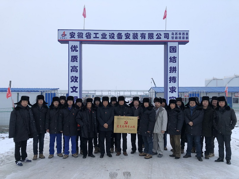2018年1月12日,集團公司黨委副書記牛曙東、紀委書記宋志華、黨委工作部主任徐文聯(lián)一行,在零下20度天氣,冒著凜冽的寒風,迎著飛舞的雪花,踏著濕滑的道路,蒞臨安徽安裝公司新疆烏蘇市工業(yè)園西區(qū)管廊項目驗收“黨員先鋒號”工程創(chuàng)建工作并舉行授牌儀式。集團公司新疆辦事處負責人孫仁發(fā),投資公司黨總支書記余志剛,安徽路港公司副總經理張俊,安徽安裝公司董事長、總經理、黨委副書記王軍邦,總經理助理、西北分公司經理、新疆辦事處主任王軍陪同。創(chuàng)建驗收會議由徐文聯(lián)主持。
