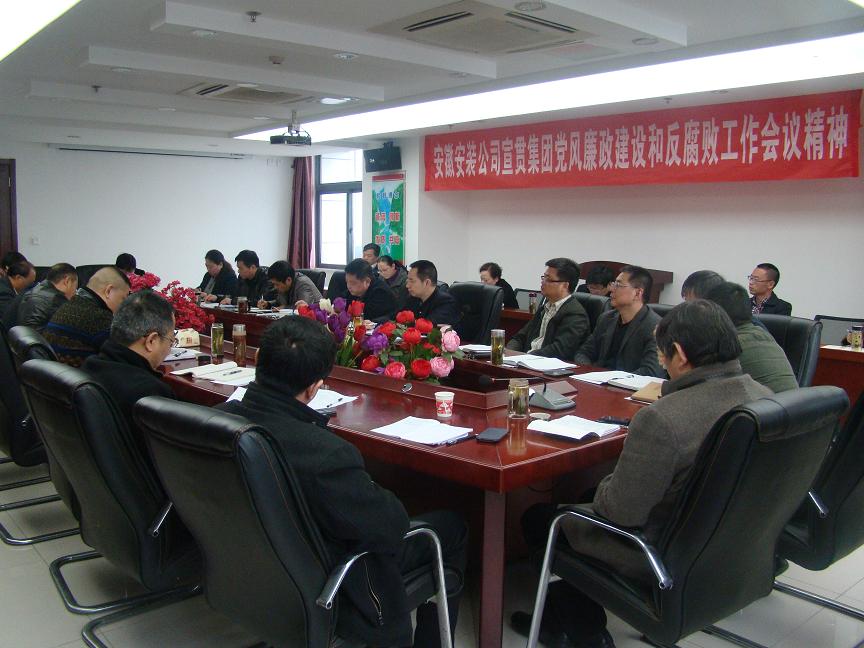 3月18日上午,安徽安裝公司召開了中層管理人員會議,認真學(xué)習(xí)宣傳集團公司黨風(fēng)廉政建設(shè)和反腐敗工作會議精神。會上,公司紀委書記李寬旭認真?zhèn)鬟_了集團公司黨風(fēng)廉政建設(shè)和反腐敗工作會議精神,組織學(xué)習(xí)了集團紀委書記宋志華的工作報告和集團黨委書記、董事長趙時運的重要講話精神。并就四個意識、四種形態(tài)、四個自覺、六大紀律和“一崗雙責(zé)”等作出強調(diào)。
