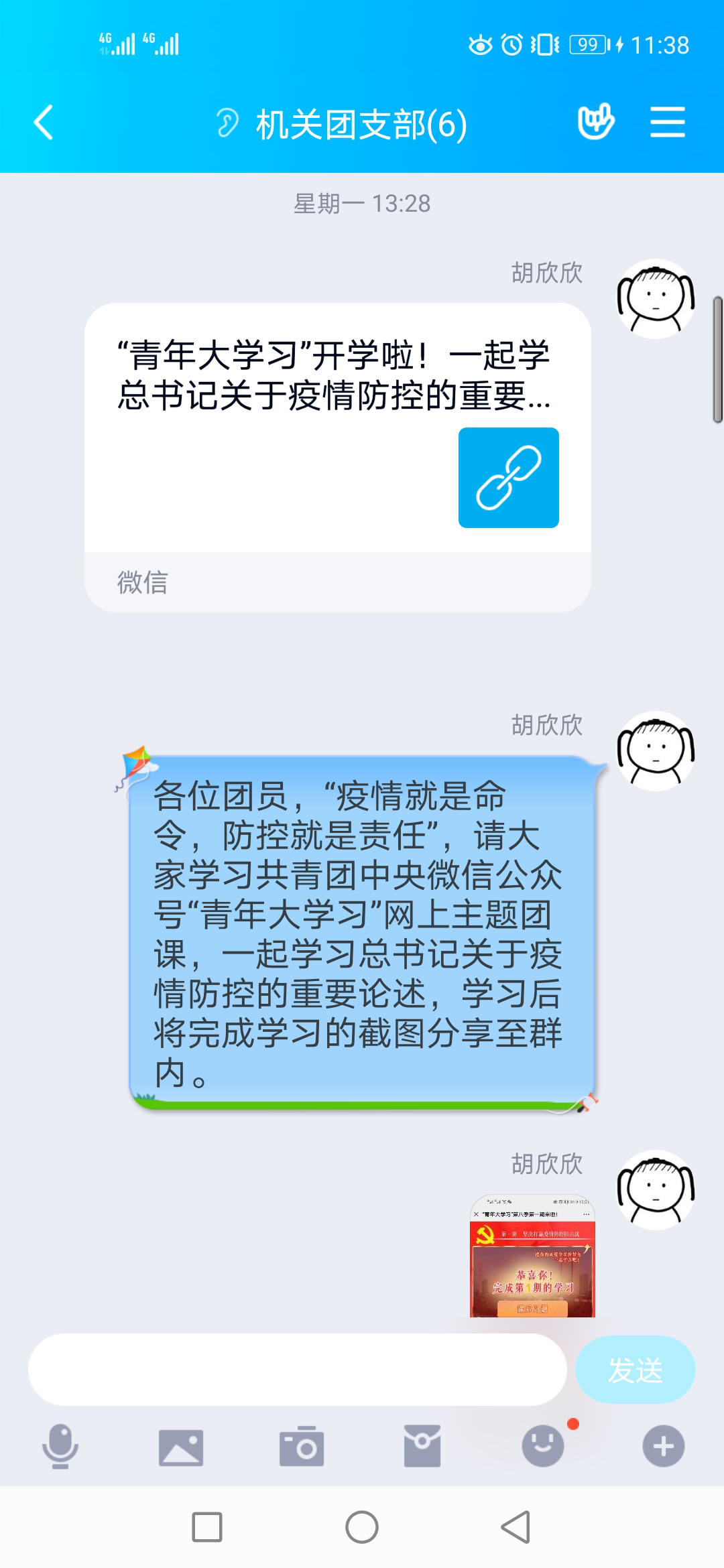 2月17日,共青團(tuán)中央“青年大學(xué)習(xí)”網(wǎng)上主題團(tuán)課第八季如期開學(xué),機(jī)關(guān)團(tuán)支部第一時間組織團(tuán)員青年進(jìn)行線上觀看,學(xué)習(xí)總書記關(guān)于疫情防控的重要論述。新冠肺炎疫情防控工作依然是當(dāng)前最重要一項(xiàng)任務(wù),將黨中央的精神學(xué)入腦、記在心,也是團(tuán)員青年的重要責(zé)任。