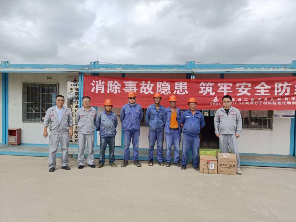 6月13日,年產(chǎn)12.5萬噸高分子材料抗老化助劑項目部開展了“送清涼”活動,為項目一線施工人員送上了防暑降溫物品,送去了夏日清涼,做好高溫天氣下一線施工人員的防暑降溫工作。