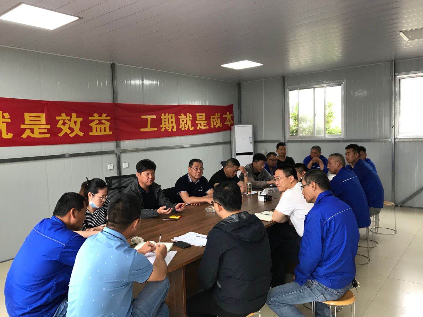王軍強調(diào),一要抓好安全生產(chǎn)不放松,結(jié)合實際加強施工人員安全知識的學(xué)習(xí)與培訓(xùn),堅決樹牢安全發(fā)展理念,守住安全生產(chǎn)底線;二要樹立“工期就是成本、工期就是效益”的管理理念,在搶工期、搶進度的同時,充分做好工期反索賠準(zhǔn)備工作;三要力爭早日完工、早日投產(chǎn),實現(xiàn)多方共贏的良好局面,力爭達到“干一項工程、樹一座豐碑、交一方朋友、占一片市場”的效果。