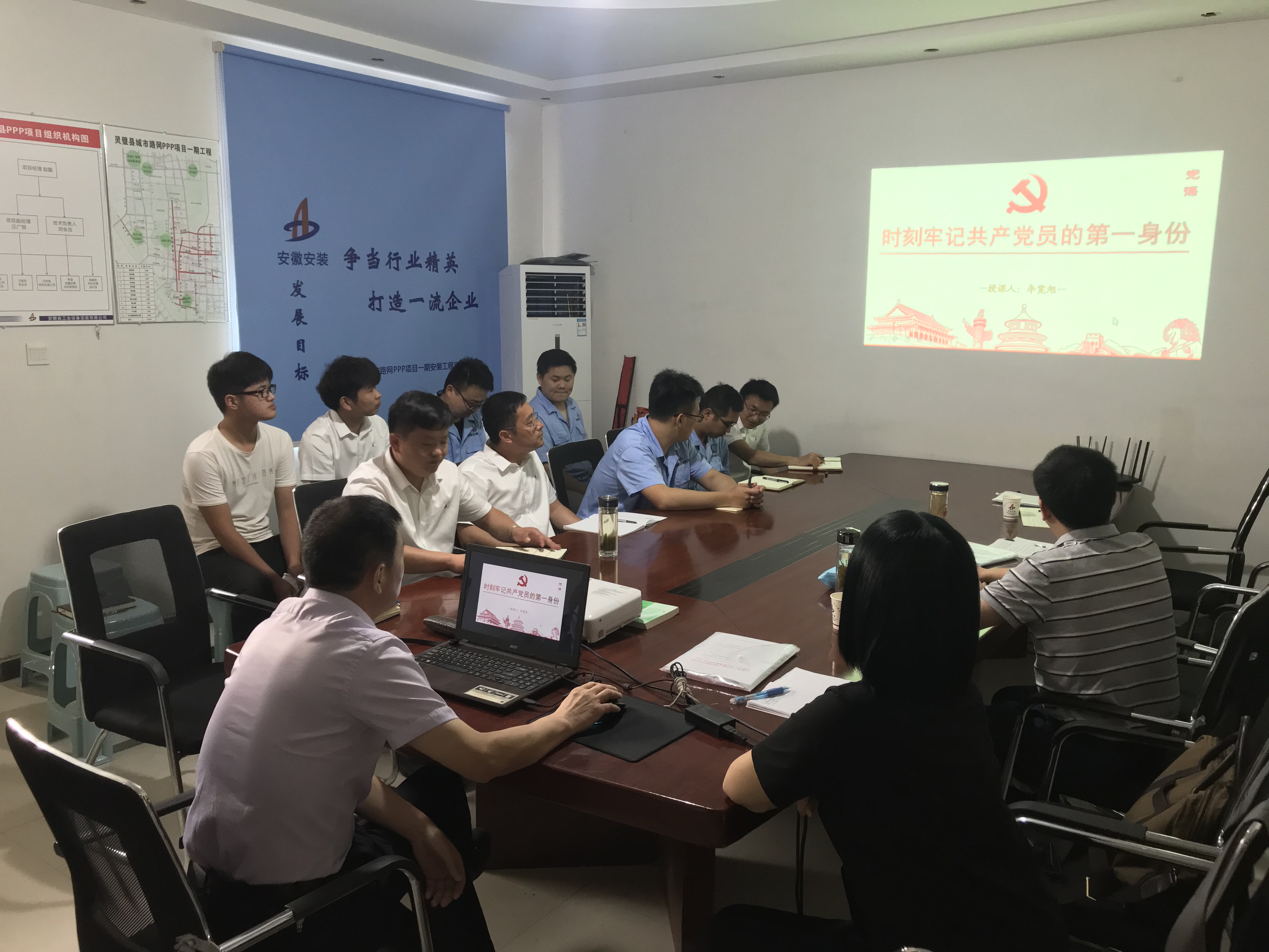 7月14日上午,公司工會主席、紀委書記李寬旭赴靈璧璧城市路網PPP項目,結合企業實際和自身感悟,以“時刻牢記共產黨員的第一身份”為主題,給項目部所有員工上了一堂精彩的黨課。