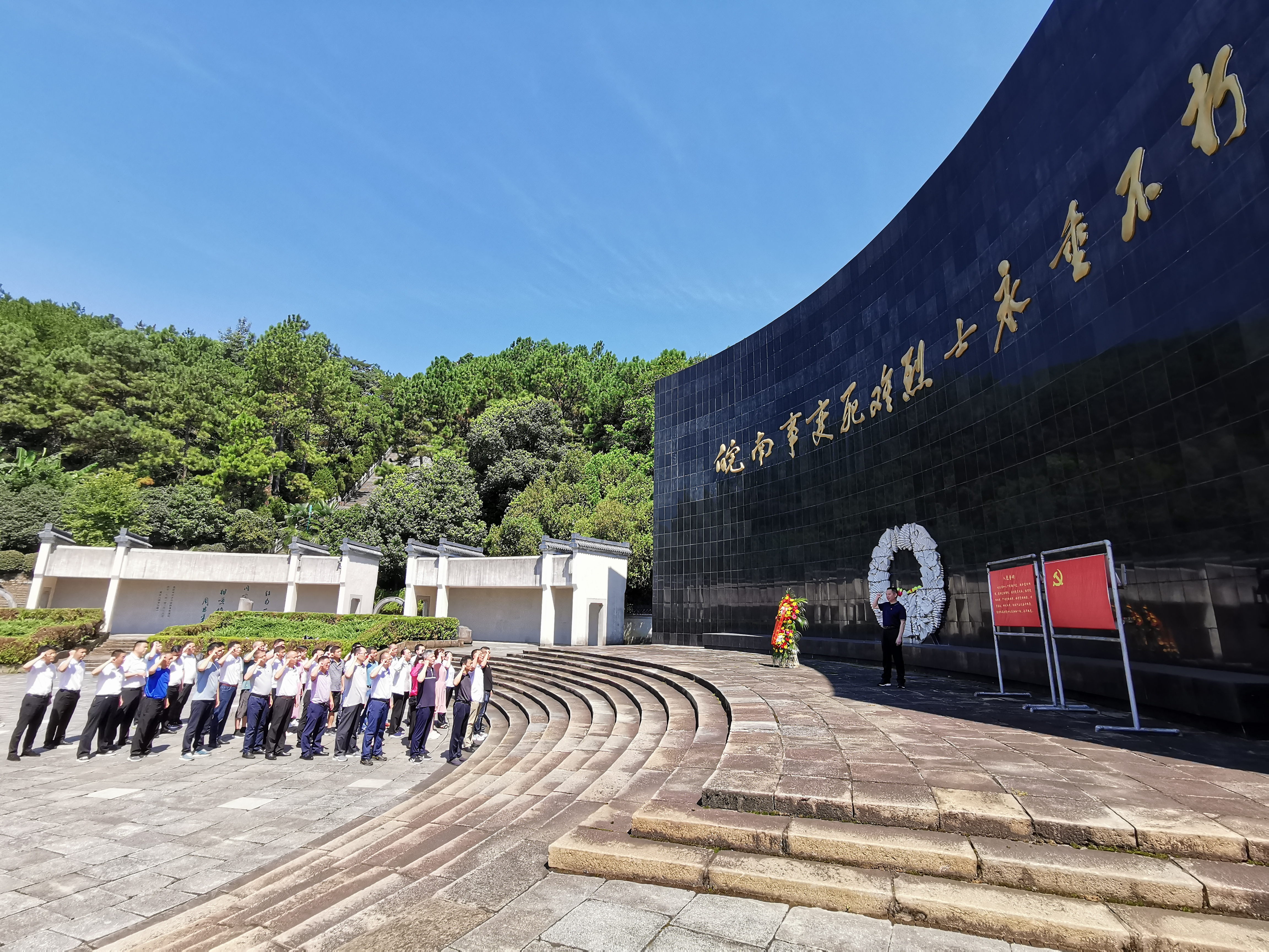 在莊嚴(yán)肅穆的皖南事變烈士陵園內(nèi),大家認(rèn)真聽取講解員的講解,詳細(xì)了解新四軍發(fā)展壯大、英勇抗日的光輝歷程,在“皖南事變死難烈士永垂不朽”紀(jì)念碑下,在低沉肅穆的哀樂聲中,向烈士三鞠躬、默哀。并向英勇犧牲的烈士們敬獻(xiàn)花籃,同志們莊嚴(yán)的舉起右拳,重溫了入黨誓詞。在新四軍軍部舊址,一件件珍貴的文物、一幅幅生動(dòng)的照片、一段段感人的事跡讓大家仿佛置身于那戰(zhàn)火紛飛的年代,深刻感受到新四軍波瀾壯闊的戰(zhàn)斗歷史,親身感受到革命先輩們?yōu)楦锩硐霋侇^顱灑熱血的獻(xiàn)身精神。