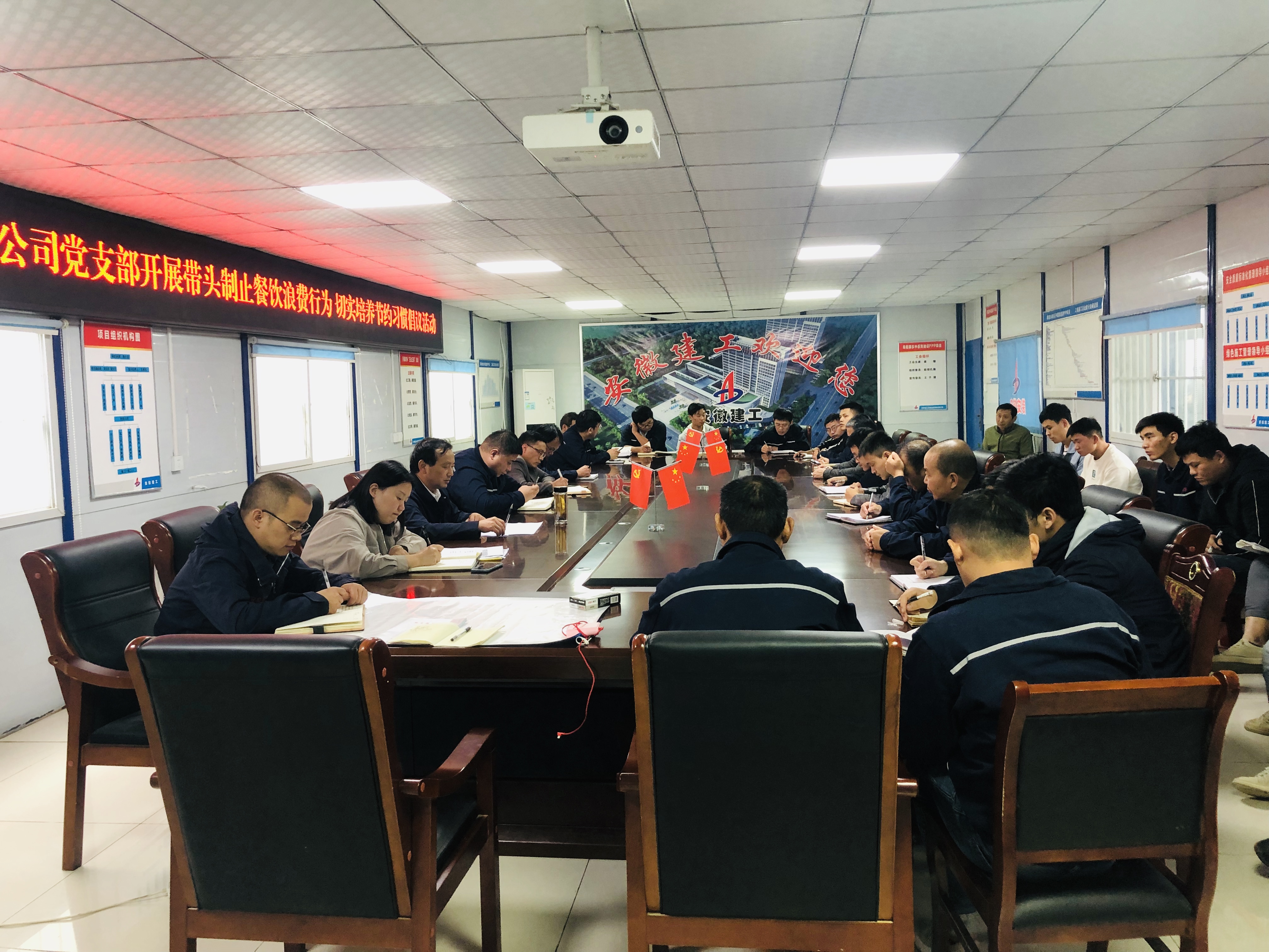 會議強調(diào)要扎實做好學(xué)習(xí)宣傳貫徹習(xí)近平總書記考察安徽重要講話精神,把工作延伸到生產(chǎn)一線、基層項目部,推動習(xí)近平總書記考察安徽重要講話精神深入人心。同時也要高度重視習(xí)近平總書記制止餐飲浪費重要行為指示,項目部黨員要發(fā)揮黨員先鋒模范作用,在厲行節(jié)約反對浪費方面,特別是餐飲浪費上走在前、作表率,自覺將勤儉節(jié)約反對浪費的理念內(nèi)化于心、外化于行,讓勤儉節(jié)約的中華美德代代傳承。