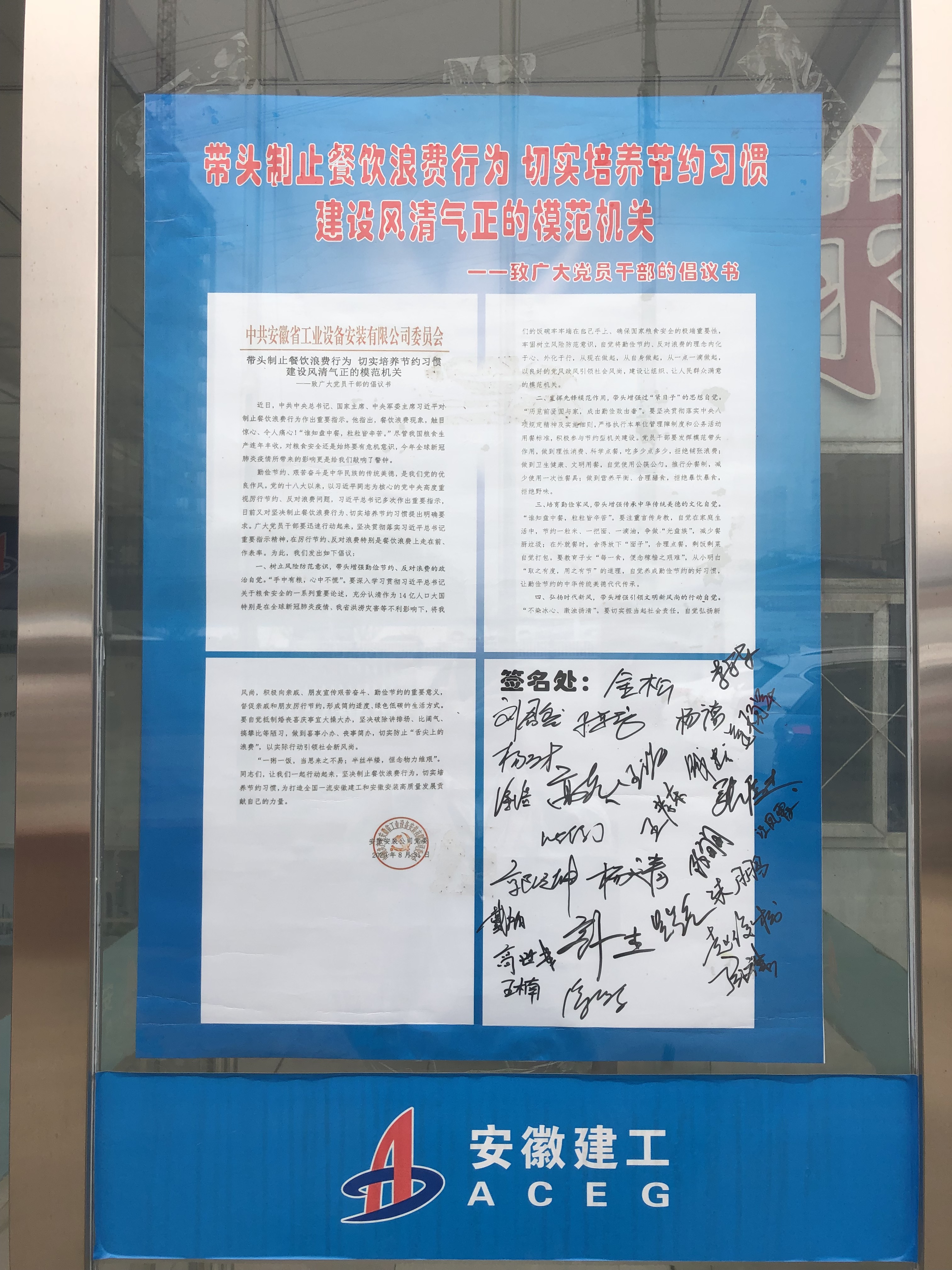 會后,全體項目部職工在制止餐飲浪費行為切實培養(yǎng)節(jié)約習(xí)慣的倡議書上紛紛簽名承諾。