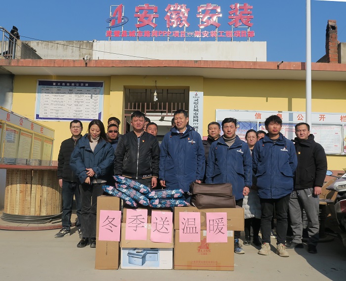 項目經理趙磊表示在現在項目搶工的非常時期分公司從資金、人員等各個方面鼎力支援,又在寒冷的冬日及時送來御寒物品,這不僅溫暖了大家的身體,更溫暖了大家的心里。項目部將一如既往,鼓足干勁,發揮安裝人的精神,干好項目、開拓市場,力爭將安徽安裝的旗幟飄揚在靈璧各處!
