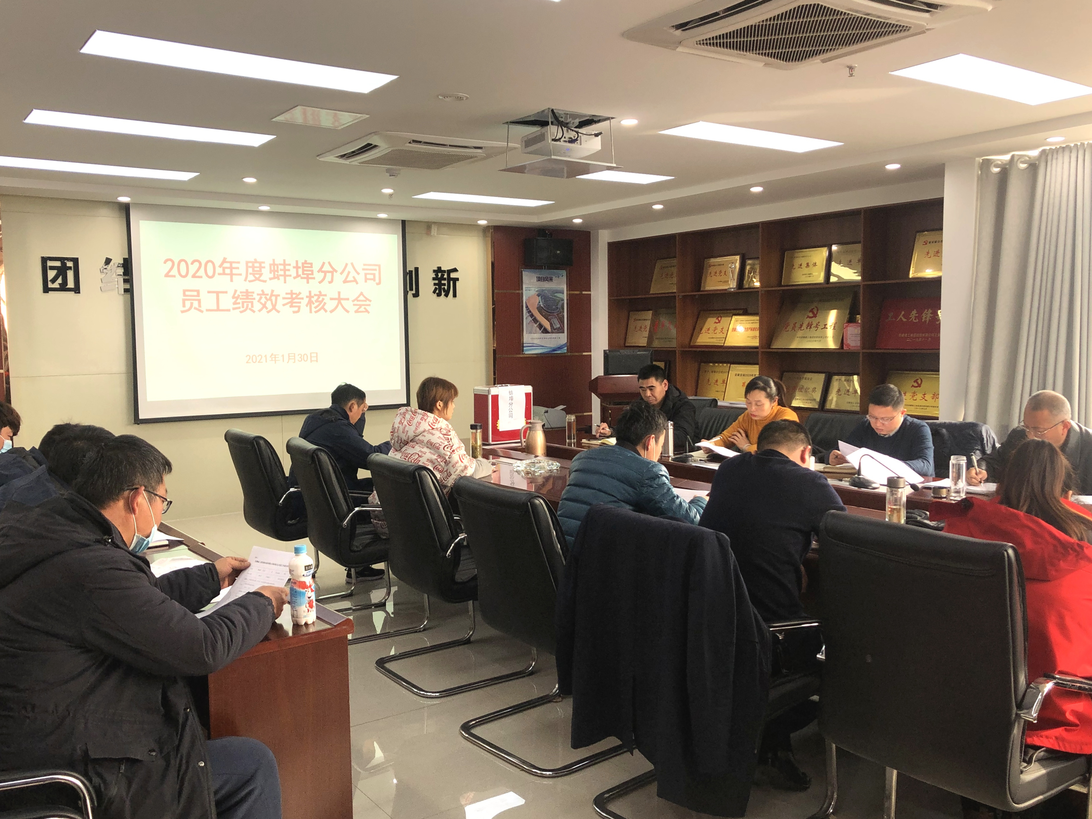 2021年1月30日,蚌埠分公司召開2020年度員工績效考核大會。分公司全體職工參加。