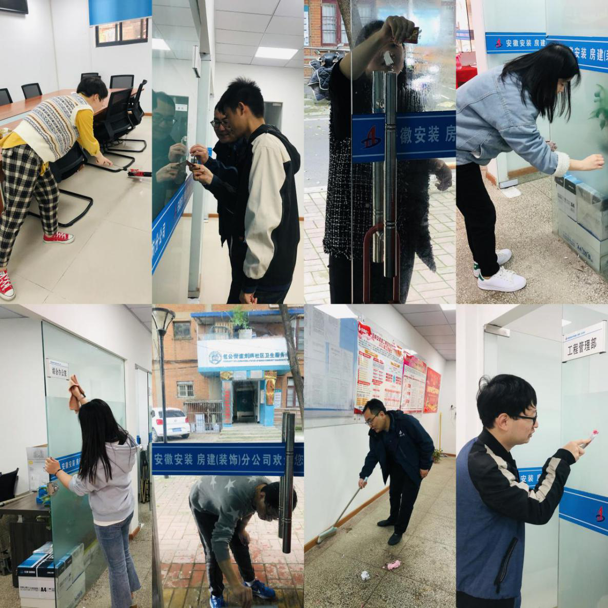 擦洗門窗,打掃會議室、整理辦公場所,修繕公共設(shè)施等,員工們拿起掃帚、簸箕等各種工具,大家分工明確,迅速行動,團結(jié)協(xié)作,一片熱火朝天的忙碌景象,掀起了衛(wèi)生整治活動的高潮。經(jīng)過大家的努力,辦公區(qū)干凈整潔,煥然一新。