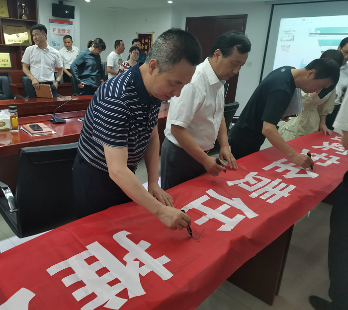 會(huì)議傳達(dá)了安徽安裝公司“安全生產(chǎn)月”活動(dòng)方案,并對(duì)“安全生產(chǎn)月”的各項(xiàng)活動(dòng)進(jìn)行了動(dòng)員部署,組織全體參會(huì)人員集中觀看《生命重于泰山--學(xué)習(xí)習(xí)近平總書記關(guān)于安全生產(chǎn)重要論述》專題片并進(jìn)行安全宣誓,在主題橫幅上鄭重簽名,做出莊嚴(yán)的安全承諾。