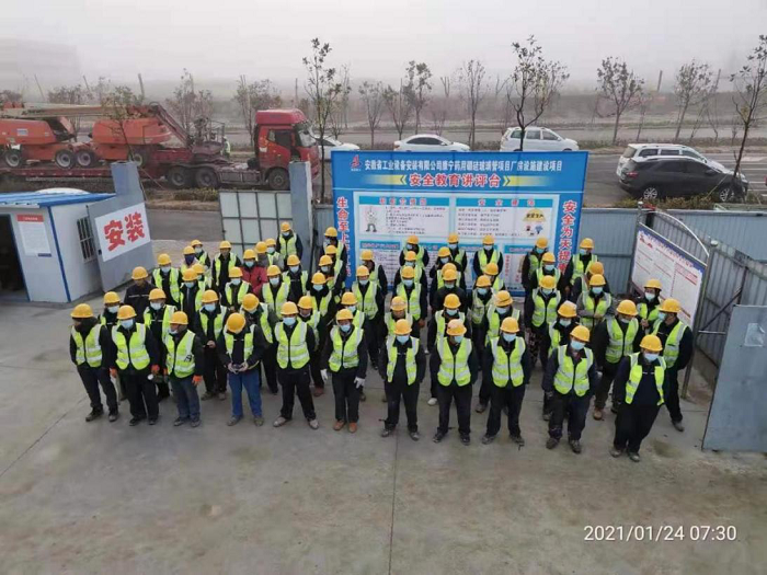 康寧項目的承接開啟了安徽安裝與安徽水利項目合作新模式。作為外企項目,該工程工期履約要求嚴苛,施工工藝要求高,驗收標準嚴格,遠超出國內工程要求。項目承接初期,無數個未知擺在建設者面前,項目施工壓力巨大。公司意識到這是一場“開工即是決戰”的硬仗。為此,公司高度重視,成立了由公司領導和相關部門組成的項目指揮部,從分公司調配精兵強將組建項目部,一場與時間賽跑的施工就此拉開了序幕。