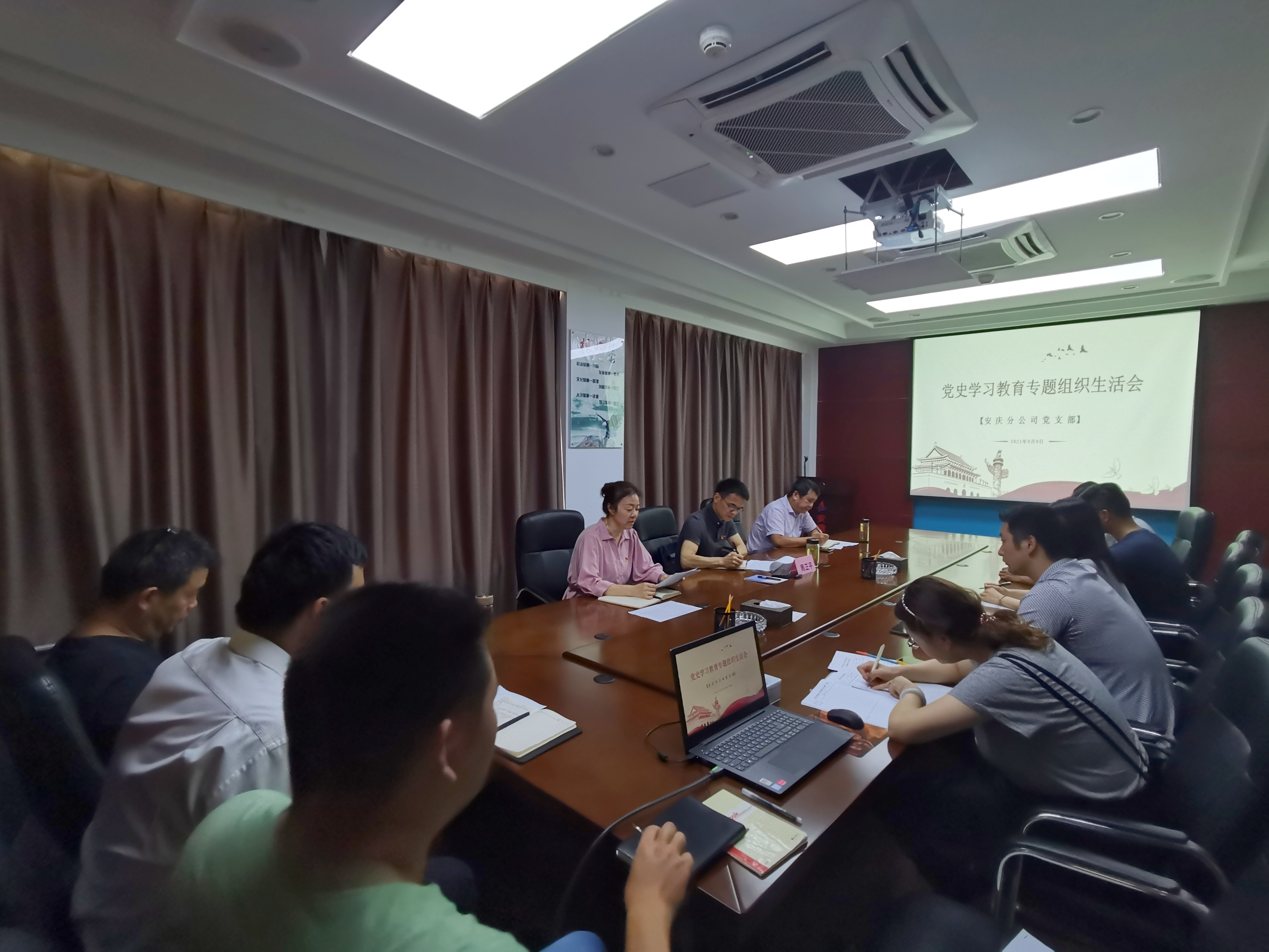 為深入學習領會習近平總書記在慶祝中國共產黨成立一百周年大會上的重要講話精神,進一步推進黨史學習教育走深走實,9月9日,安慶分公司黨支部組織召開黨史學習教育專題組織生活會,公司黨委副書記、副總經理周正平以普通黨員身份出席會議,支部班子成員、全體黨員參會,會議由黨支部書記劉紅艷主持。