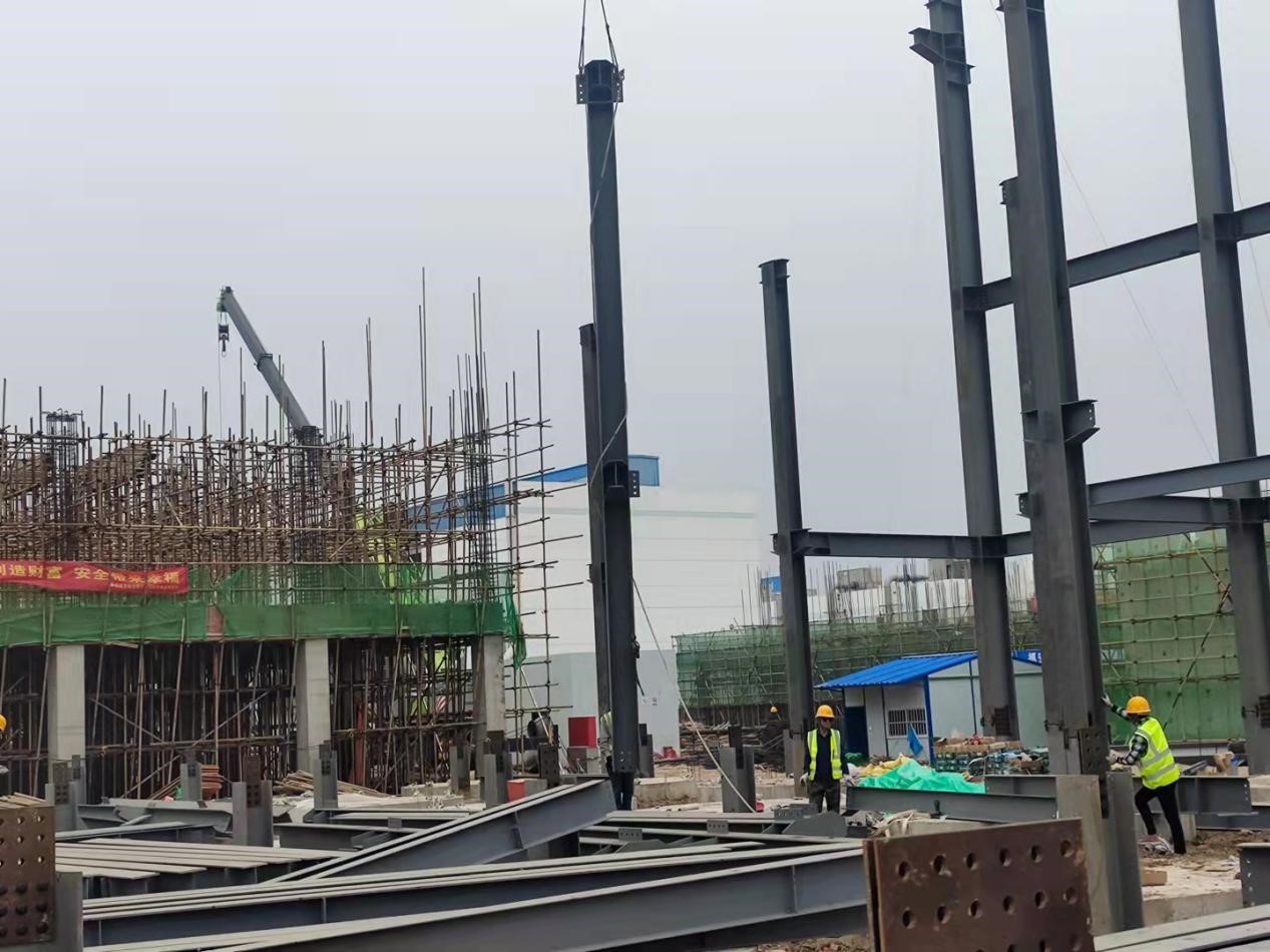 發(fā)酵車間C區(qū)鋼結(jié)構(gòu)區(qū)域,吊裝作業(yè)正在如火如荼進(jìn)行;B區(qū)滿堂腳手架緊張搭設(shè),鋼筋工頂著烈日進(jìn)行鋼筋綁扎,投料車間兩臺(tái)挖機(jī)聯(lián)動(dòng),進(jìn)行管廊支架基礎(chǔ)基坑開挖,控制車間正在忙忙碌碌進(jìn)行內(nèi)墻二次結(jié)構(gòu)砌筑。各個(gè)車間有條不紊的忙碌著,整個(gè)項(xiàng)目現(xiàn)場(chǎng)一片火熱,迅速掀起“比、學(xué)、趕、幫、超”施工高潮!