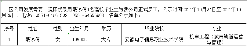 2021年第四批次擬錄用高校畢業生公示