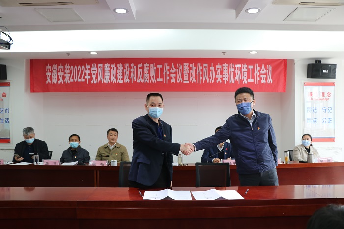 會(huì)上傳達(dá)學(xué)習(xí)了習(xí)近平總書記在十九屆中央紀(jì)委六次全會(huì)上的重要講話精神、省紀(jì)委十一屆二次全會(huì)精神、全省改進(jìn)工作作風(fēng)為民辦實(shí)事為企優(yōu)環(huán)境大會(huì)精神以及集團(tuán)黨風(fēng)廉政建設(shè)和反腐敗工作暨改作風(fēng)辦實(shí)事優(yōu)環(huán)境工作會(huì)議精神,宣讀了《安徽安裝公司改作風(fēng)、辦實(shí)事、優(yōu)環(huán)境工作實(shí)施意見》,公司黨委與所屬各黨支部簽訂了《黨風(fēng)廉政建設(shè)責(zé)任書》,公司中層管理人員簽訂了《廉潔自律承諾書》。會(huì)議以現(xiàn)場加視頻形式召開,公司機(jī)關(guān)各部門正副職、合肥地區(qū)分公司領(lǐng)導(dǎo)班子成員,外地分公司分別在主、分會(huì)場參加會(huì)議。