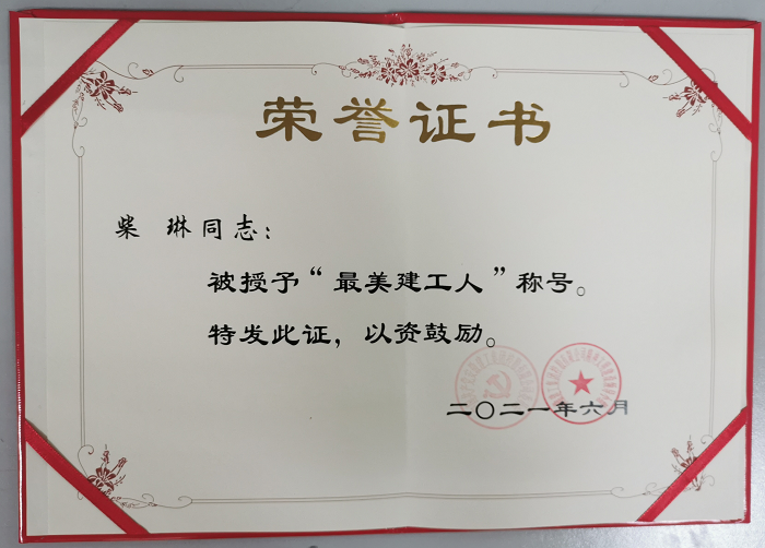 同時,他堅持在現場每周開展一次全員升國旗愛國教育活動,升國旗、唱國歌、講黨和國家的歷史,進行全員教育。柴琳同志還特別關注項目青年員工的思想動態,定期組織開展交心談話活動,為過生日的員工舉辦生日會,為家庭出現困難的員工主動幫助,穩定情緒,保證項目的團結氛圍,做職工群眾的貼心人。