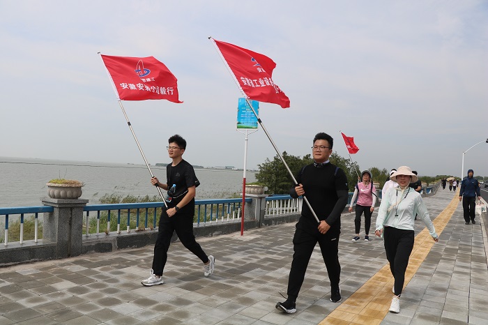 本次毅行活動路線以渡江戰役紀念館為起點,沿環湖北路東行,終點設于長臨河古鎮,全程約14公里。同時根據大家報名情況,編排4個隊,每隊設隊長、聯絡員、旗手各一名,大家相互幫助、相互協作。為保證活動的順利開展,工會貼心準備了云南白藥噴霧、創可貼等藥品,設有補給車為大家提供水和小面包補充體力,并安排車輛沿途隨行以防意外發生,切實為活動參與人員飲水供應及人身安全提供有力的保障。