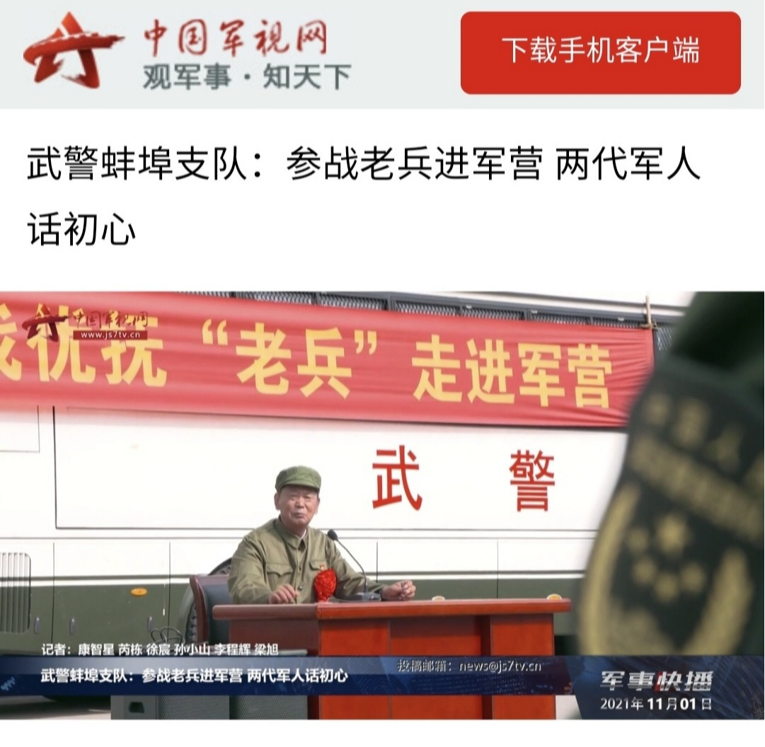 近日,《中國軍視網》《人民武警報》專題報道安徽安裝蚌埠分公司年飛同志作為參戰退伍老兵講授專題黨課。