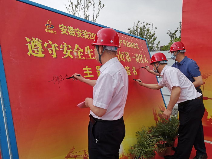 在全國第21個“安全生產月”活動到來之際,5月30日上午,安徽安裝公司2022年“安全生產月”啟動儀式在年配套1000萬臺新能源汽車及年產2億臺制冷空調壓縮機關鍵性能件制造基地項目舉行。公司黨委書記、董事長胡六中,紀委書記、工會主席李楊,副總經理趙伯平,總工程師吳繼成及機關各部門、各分公司代表參加了本次活動。