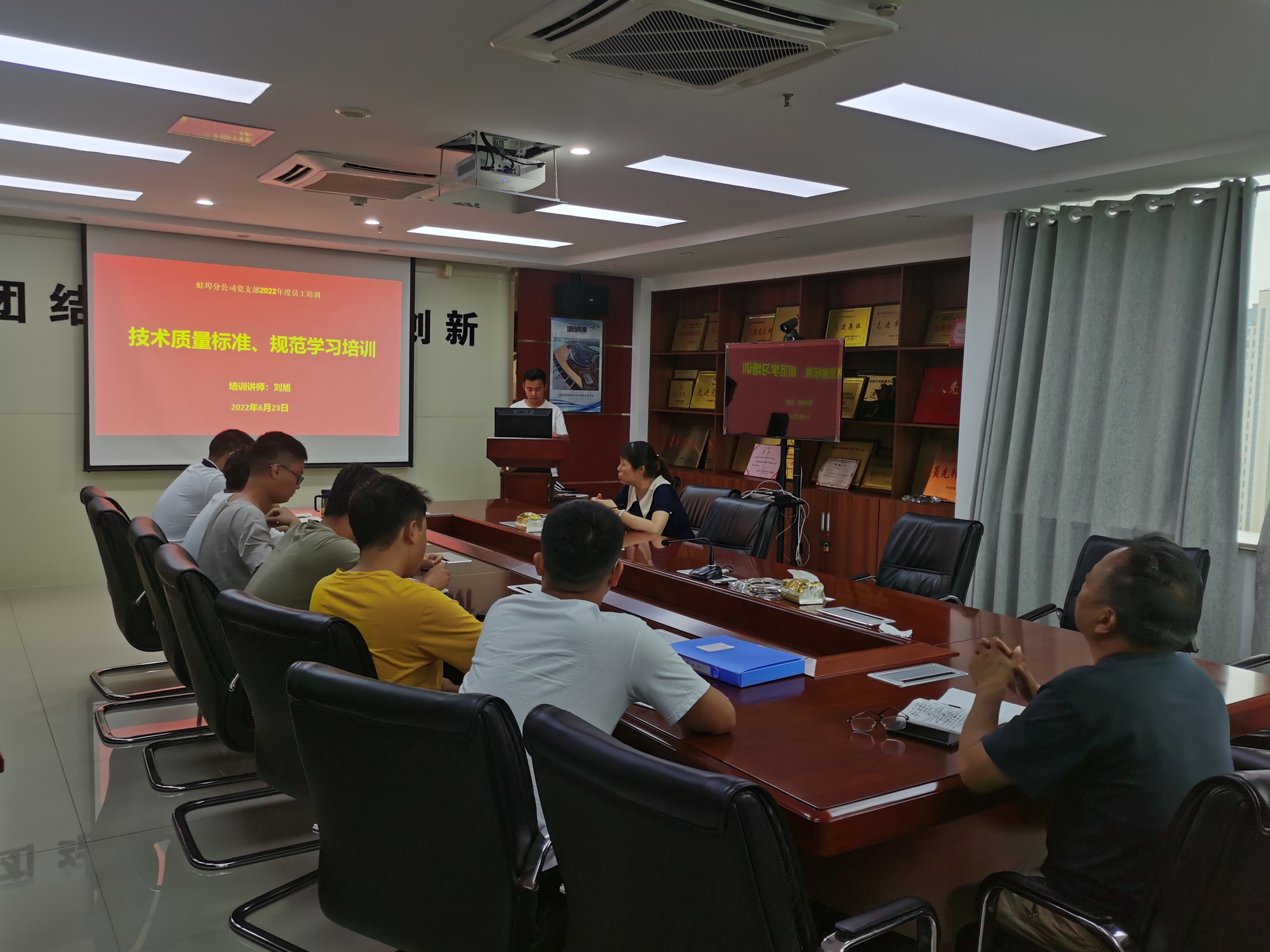 為扎實推進蚌埠分公司“項目管理年”活動開展,強化項目員工對技術規范應知應會學習掌握,根據蚌埠分公司黨支部2022年度員工培訓計劃安排,6月23日下午,分公司第五期培訓課堂如期開課。本期培訓內容為《技術質量標準、規范學習》,由分公司技術質量部劉旭主講。