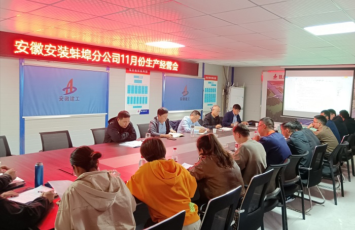 11月10日,蚌埠分公司在凱盛項(xiàng)目部召開11月份生產(chǎn)經(jīng)營會。分公司領(lǐng)導(dǎo)班子成員、各項(xiàng)目主要負(fù)責(zé)人、機(jī)關(guān)各部門負(fù)責(zé)人及工程部全體員工參加會議,會議由分公司副經(jīng)理郭洋主持。