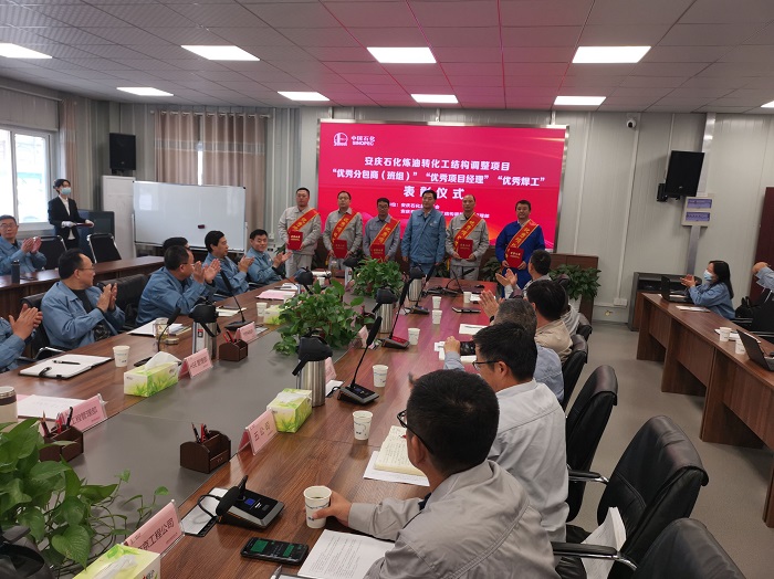 安慶石化副總經理張業金宣讀表彰決定并作總結講話。他指出,在煉轉化項目執行中,各參建單位圍繞項目目標任務,共克時艱、團結奮斗,取得了突出成績。并要求各參建單位和個人要向被表彰的先進看齊,學習先進、趕超先進,堅定信心、振奮精神,發揚“一家人,一條心,一個目標一股勁”精神,共同推進安慶石化項目高質量建成。