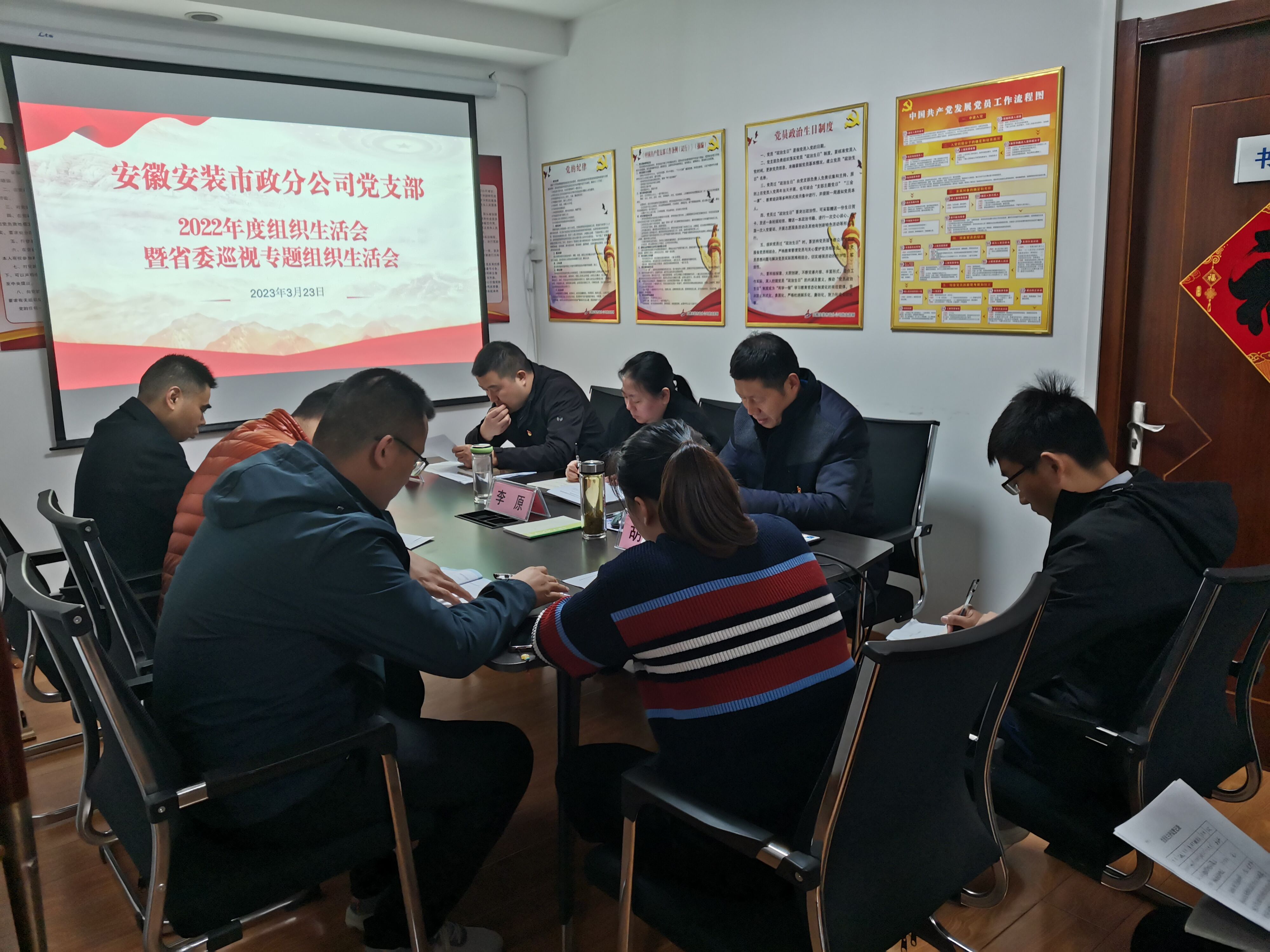 3月23日上午,市政分公司黨支部在分公司會議室召開2022年度組織生活會暨省委巡視專題組織生活會,公司副總經理李原應邀出席,分公司領導班子成員、全體黨員、入黨積極分子參加會議,黨支部書記胡迎東主持會議。