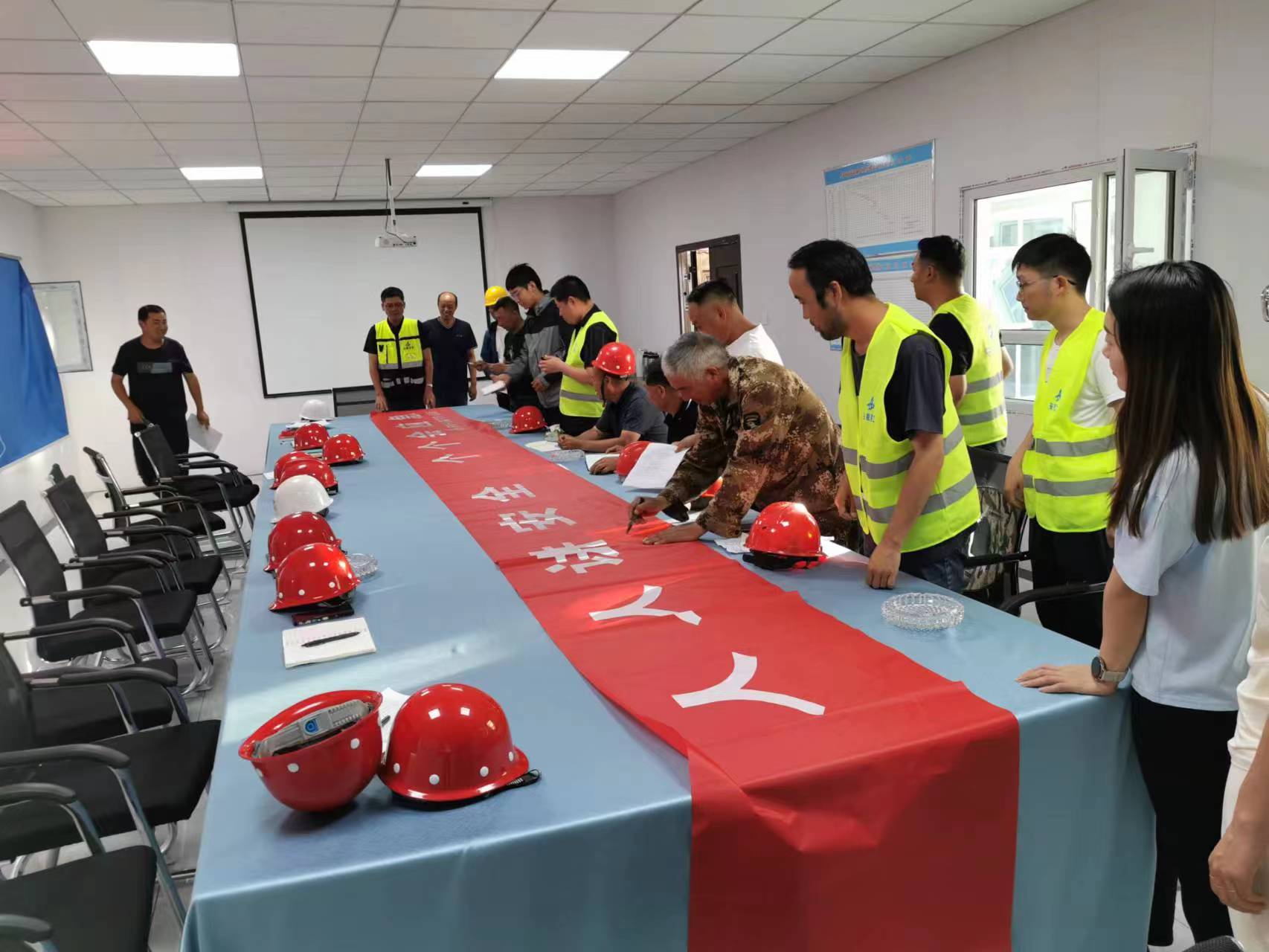 啟動儀式上,項目部安全員向大家宣讀此次安全月活動的活動方案,播放安全教育、警示類視頻,并著重講解施工現(xiàn)場及生活區(qū)一些常見而易忽視的安全隱患及防范措施,提升管理人員在面對風(fēng)險時的安全意識,并指出確保安全是各類生產(chǎn)活動的首要任務(wù),全員要樹立安全第一、生命至上的理念。分公司所屬項目部管理人員要嚴(yán)格落實安全生產(chǎn)責(zé)任制,樹牢安全紅線意識,通過宣傳教育、實戰(zhàn)演練、隱患排查等方式,讓分公司全體員工和所屬項目所有參建人員更積極主動參與到各項安全生產(chǎn)活動中來,清楚各自在安全體系管理中的責(zé)任及意義,努力營造一個“人人要安全、人人管安全”的良好安全管理氛圍,提升分公司安全管理水平。在儀式的最后,所有人員在安全員的帶領(lǐng)下莊嚴(yán)宣誓,并在印有“人人講安全,個個會應(yīng)急”的橫幅上進行安全承諾簽名。