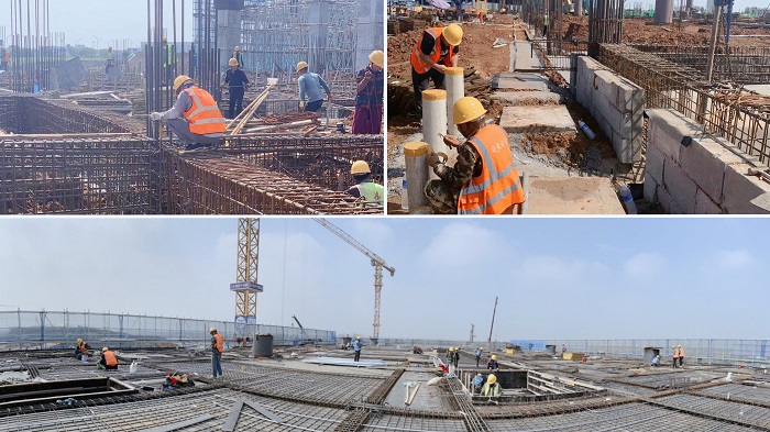 合肥新橋國際機場T2航站樓項目正在進行防雷接地,焊接圓鐵、管口封堵和預埋電氣保護套管工作