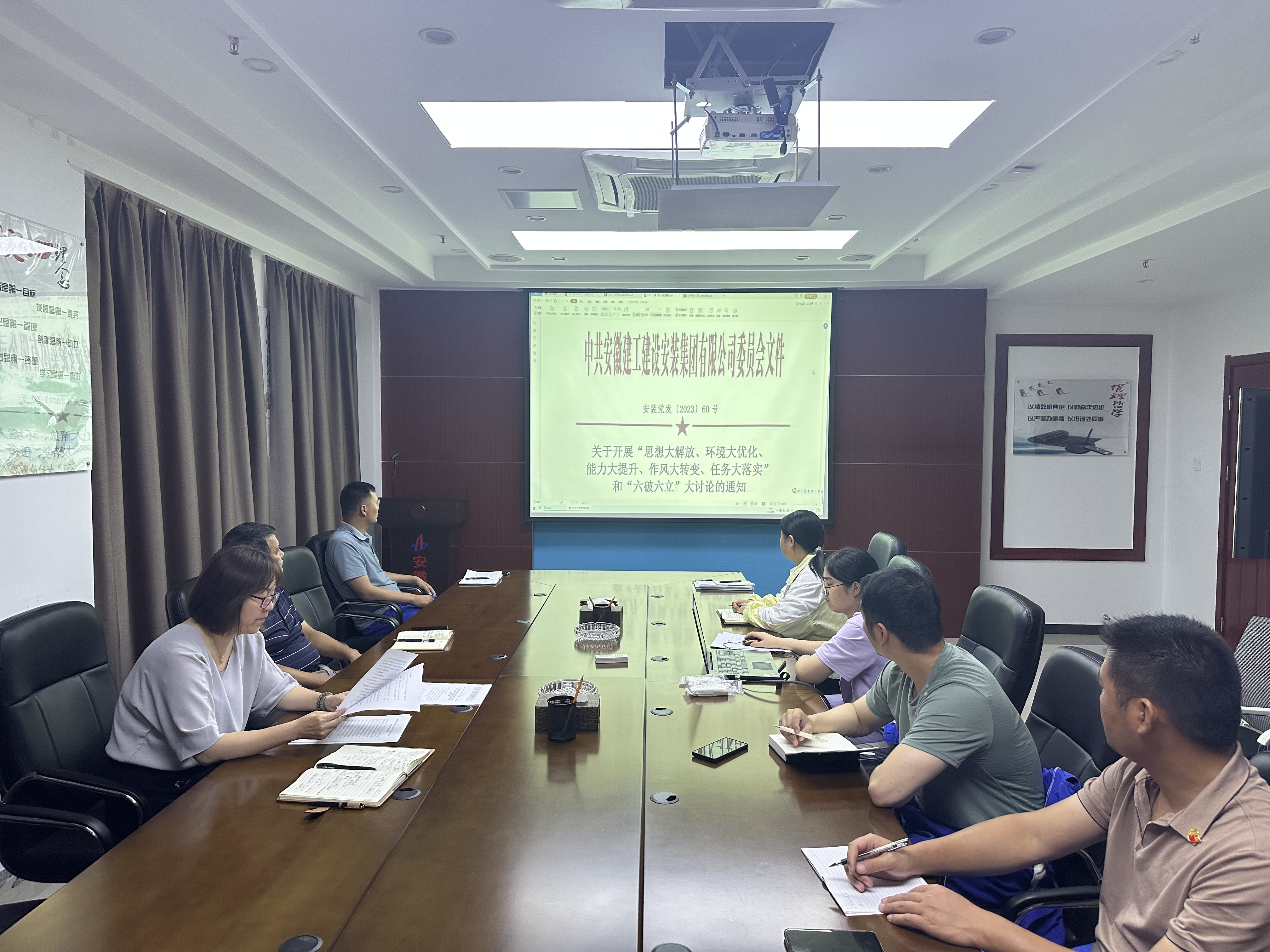 8月23日下午,安慶分公司黨支部圍繞“五大”要求、“六破六立”開展專題交流研討會,分公司全體黨員參加。