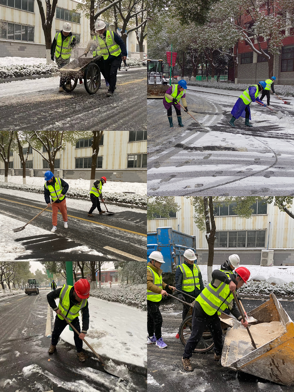 在安徽理工大學(合肥高等研究院)維修改造項目(二期)施工現場,肆虐的雪花紛紛揚揚飄落,凜冽的寒風一陣陣刮過。為確保項目生產正常進行,項目部全體人員不畏嚴寒,齊心協力破雪除冰,及時消除安全隱患;同時,項目部還加強現場管理、強化生產安全防護、嚴密監控天氣變化,為確保工程進度和質量有序推進保駕護航。