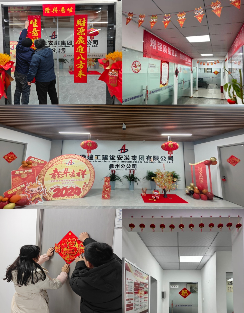 為了營造和諧、歡樂、祥和的節日氛圍,讓職工切身感受到春節的濃郁氣息。2月7日上午,建工安裝滁州分公司機關和駐肥綜合項目辦共同開展了“掛燈籠 貼春聯 歡歡喜喜迎新年”活動。