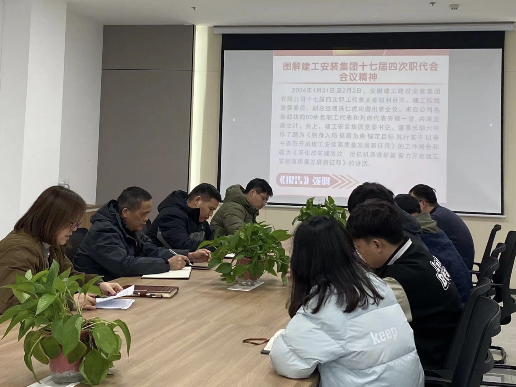 為貫徹建工控股三屆一次職代會(huì)暨2024年工作會(huì)議精神和建工安裝第十七屆四次職工代表大會(huì)精神,3月4日下午,建工安裝新能源分公司及時(shí)召開(kāi)全體職工會(huì)議,認(rèn)真?zhèn)鬟_(dá)會(huì)議精神。分公司在滁全體員工參會(huì),會(huì)議由分公司黨支部書記劉紅艷主持。