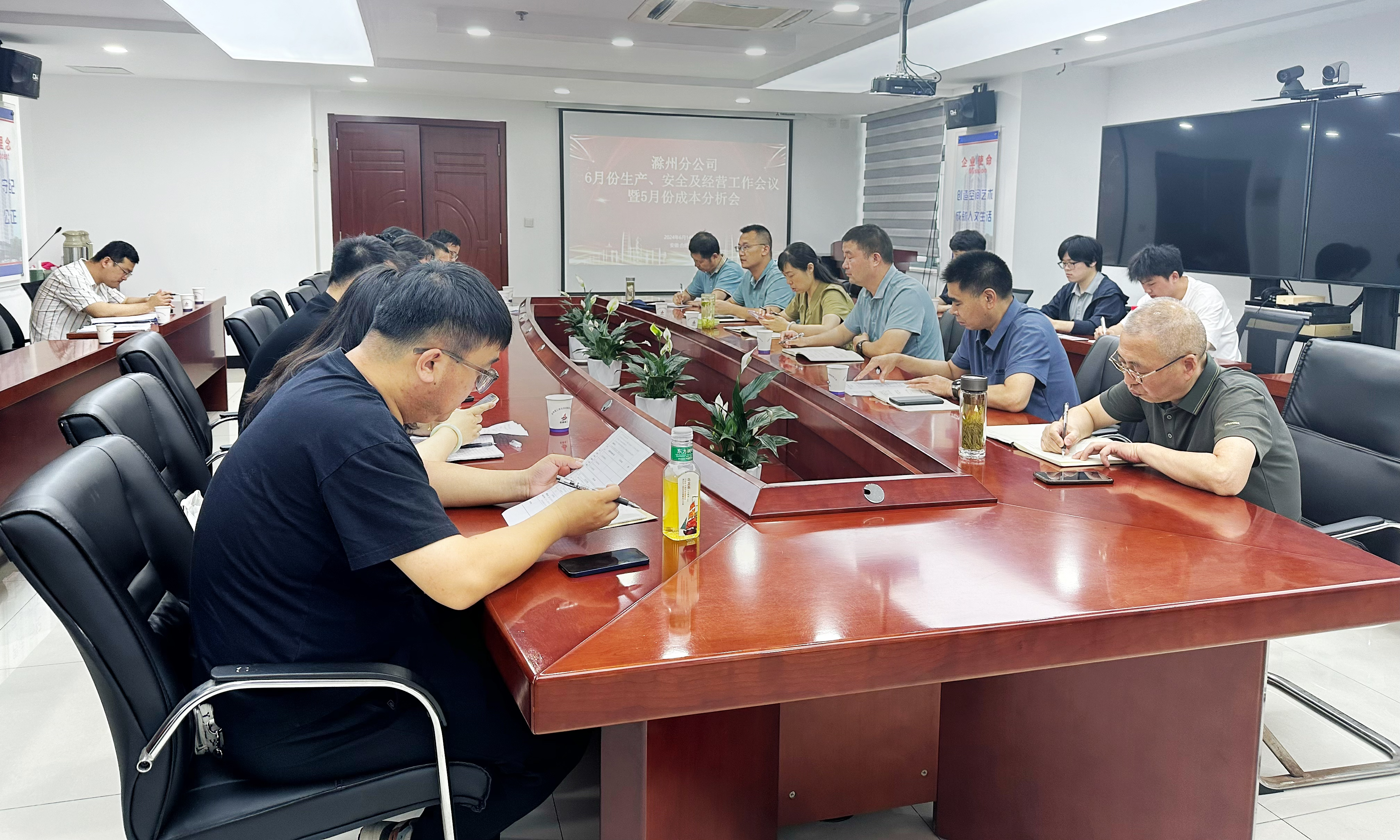 6月14日上午建工安裝滁州分公司召開6月份生產、安全及經營工作會暨5月份成本分析會。分公司領導班子成員、各項目經理、機關各部門負責人等參加會議,會議由分公司副經理張漢軍主持。