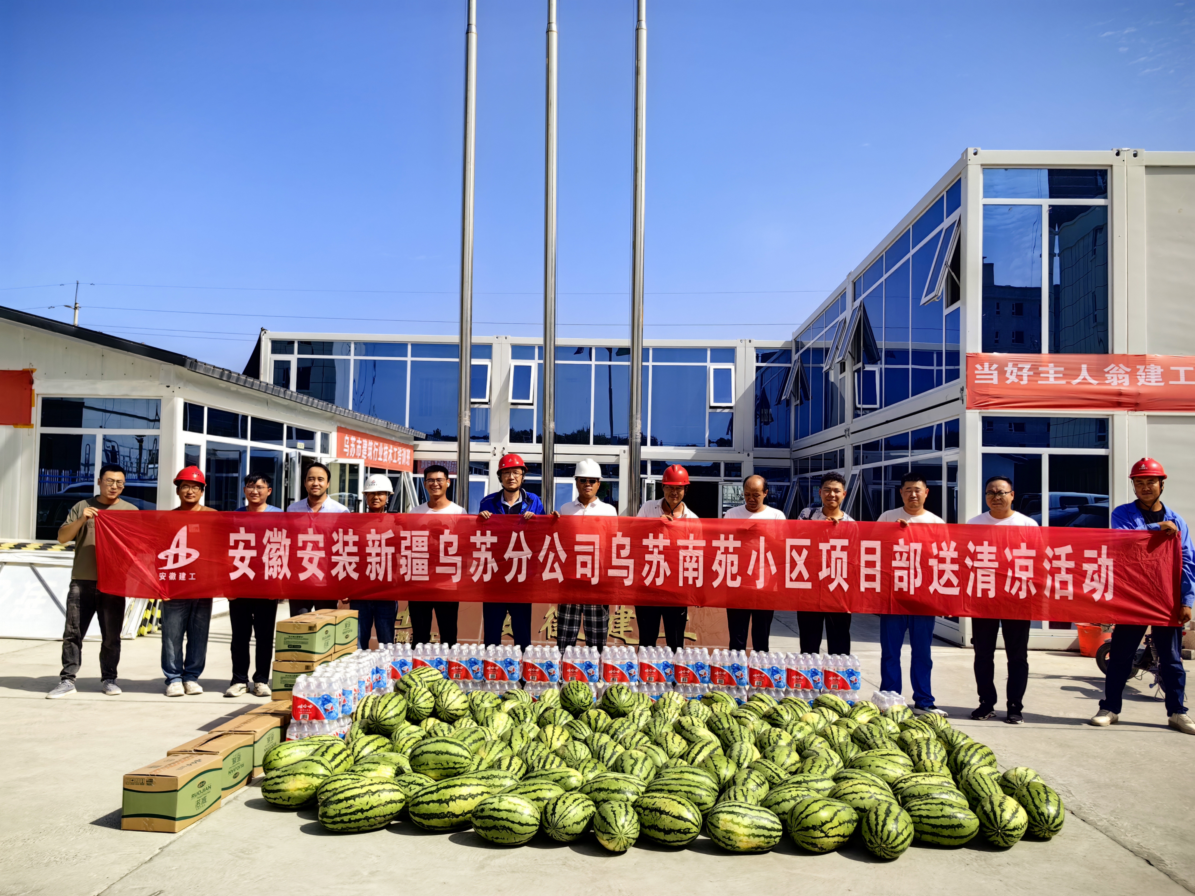 炎炎夏日,驕陽似火。近日,隨著新疆地區氣溫的逐漸攀升,建工安裝新疆烏蘇分公司工會赴烏蘇南苑新城項目部開展“送清涼”慰問活動。為了幫助員工保持良好的工作狀態,分公司工會將精心準備的西瓜、礦泉水等夏日清涼物資送往施工現場,為參建員工們帶來絲絲清涼和關懷。