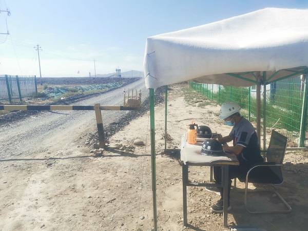2020年7月,新疆疫情反彈期間,面臨烏蘇市全市封城,生產、生活物資匱乏,施工材料、相關技術人員無法到場,為了不影響蓄水池項目施工,項目部所有管理人員全部搬至施工現場居住,并對施工區域采取封閉式管理。該同志作為分公司安全主管,帶頭輪班值崗,堅決做好施工人員的體溫測量、疫情排查防控和生活、工作區域的消毒消殺工作,同時加強對工地食堂、飲食、飲水、個人衛生和環境的管理,加強農民工生活區的檢查督導,逐一登記春節放假期間員工去向情況,及時掌握了解他們的身體健康狀況,做好登記、隔離、情況報告等工作。
