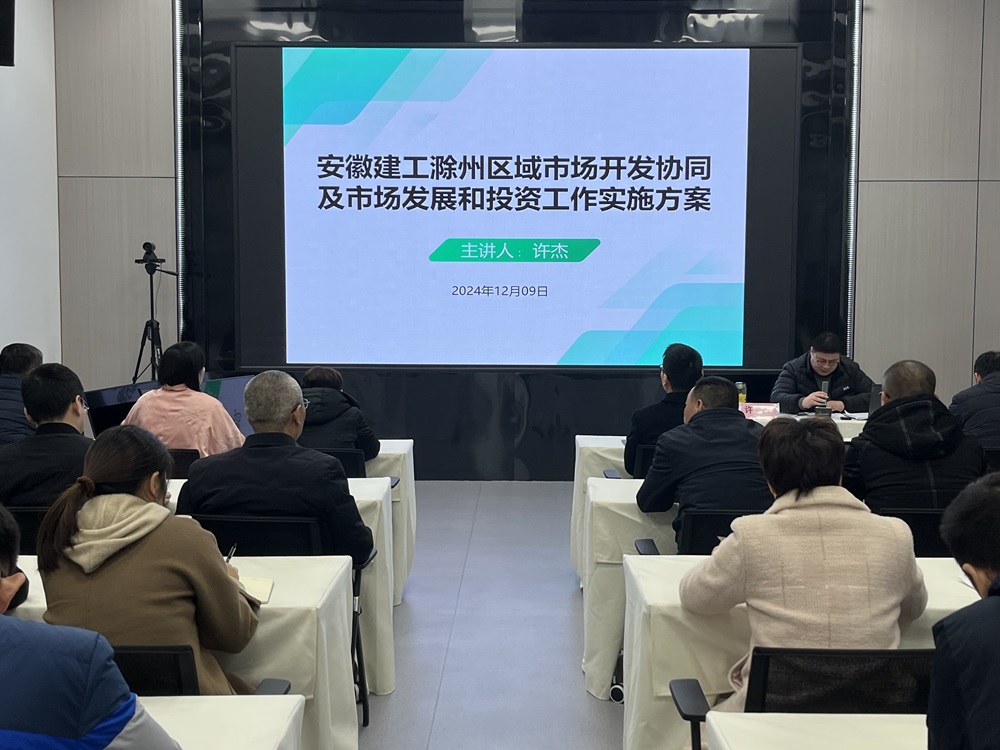 許杰圍繞市場(chǎng)開(kāi)發(fā)和投資部的部門工作實(shí)施方案進(jìn)行了詳細(xì)闡述,并就建工安裝作為滁州區(qū)域鏈長(zhǎng)單位在落實(shí)主體責(zé)任采取具體方法、舉措以及取得階段性成效進(jìn)行了詳細(xì)介紹。