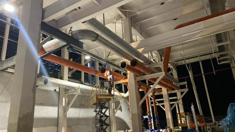 站房一(能源中心)作為整個(gè)廠區(qū)的“發(fā)動機(jī)”,建筑面積雖僅有11000平方米,但單體機(jī)電安裝造價(jià)約8000萬元,施工內(nèi)容涵蓋空壓站、污水處理站、高效制冷機(jī)房、消防泵房及給水加壓站房等全廠幾乎所有核心“部件”。面對施工工藝復(fù)雜、工期緊、標(biāo)準(zhǔn)高且施工過程中設(shè)計(jì)變更頻繁、設(shè)備供貨周期長、資金不到位等多種不利因素,項(xiàng)目部積極想辦法克服困難,采取主動對接各方資源,深化設(shè)計(jì)確認(rèn)、督促設(shè)備批量排產(chǎn)、加快技術(shù)交底完成、倒排施工計(jì)劃等一系列有效措施,堅(jiān)持“搶進(jìn)度、抓質(zhì)量、保安全”核心思想不動搖,加班加點(diǎn)推進(jìn)項(xiàng)目建設(shè)。截至目前,站房一(能源中心)形象進(jìn)度已完成55%以上,實(shí)現(xiàn)產(chǎn)能過半,為確保關(guān)鍵合同節(jié)點(diǎn)“2025年2月28日公用動力系統(tǒng)調(diào)試完成,并具備各生產(chǎn)條件”打下堅(jiān)實(shí)基礎(chǔ)。