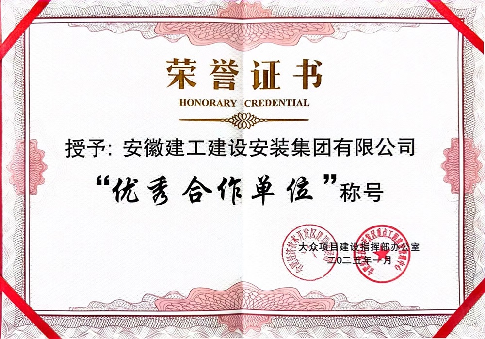 近日,建工安裝合肥分公司經(jīng)開區(qū)臨湖智能制造產(chǎn)業(yè)園項目榮獲合肥經(jīng)濟技術(shù)開發(fā)區(qū)建設(shè)發(fā)展局、合肥經(jīng)濟技術(shù)開發(fā)區(qū)重點工程建設(shè)管理中心授予的“優(yōu)秀合作單位”榮譽稱號,此份榮譽充分肯定了項目施工履約過程中的卓越表現(xiàn),為2024年終“大考”和2025年“開新局、起好步”奠定了堅實基礎(chǔ)。