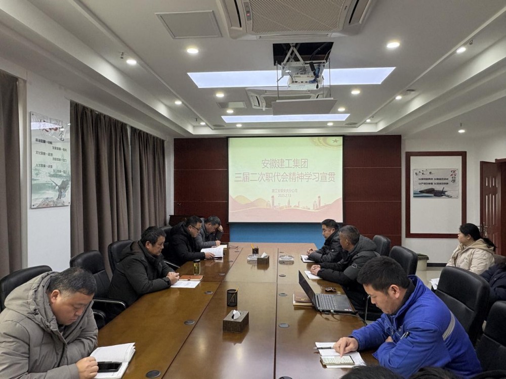 2月13日,安慶分公司召開學習會議,學習宣貫安徽建工集團三屆二次職代會暨2025年工作會議,分公司黨支部副書記李雙江主持會議,分公司全體員工參加會議。